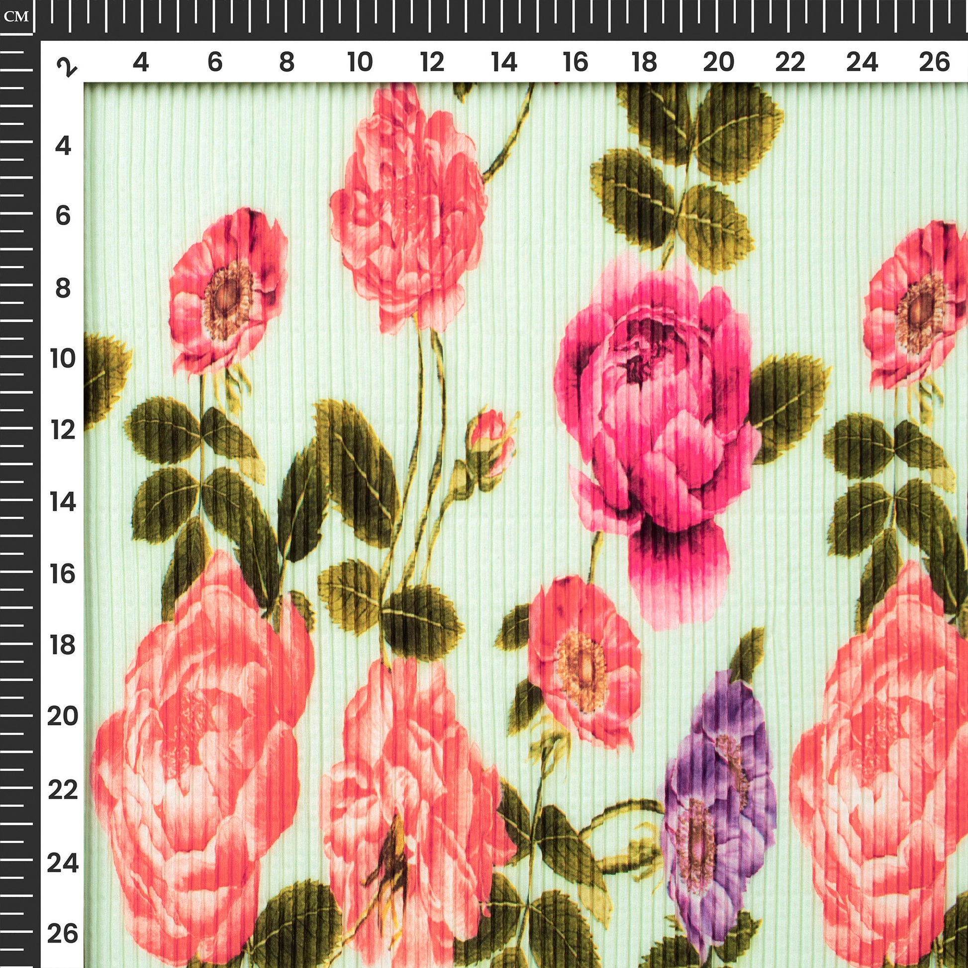 Cream Floral Digital Print French Crepe Pleated Fabric