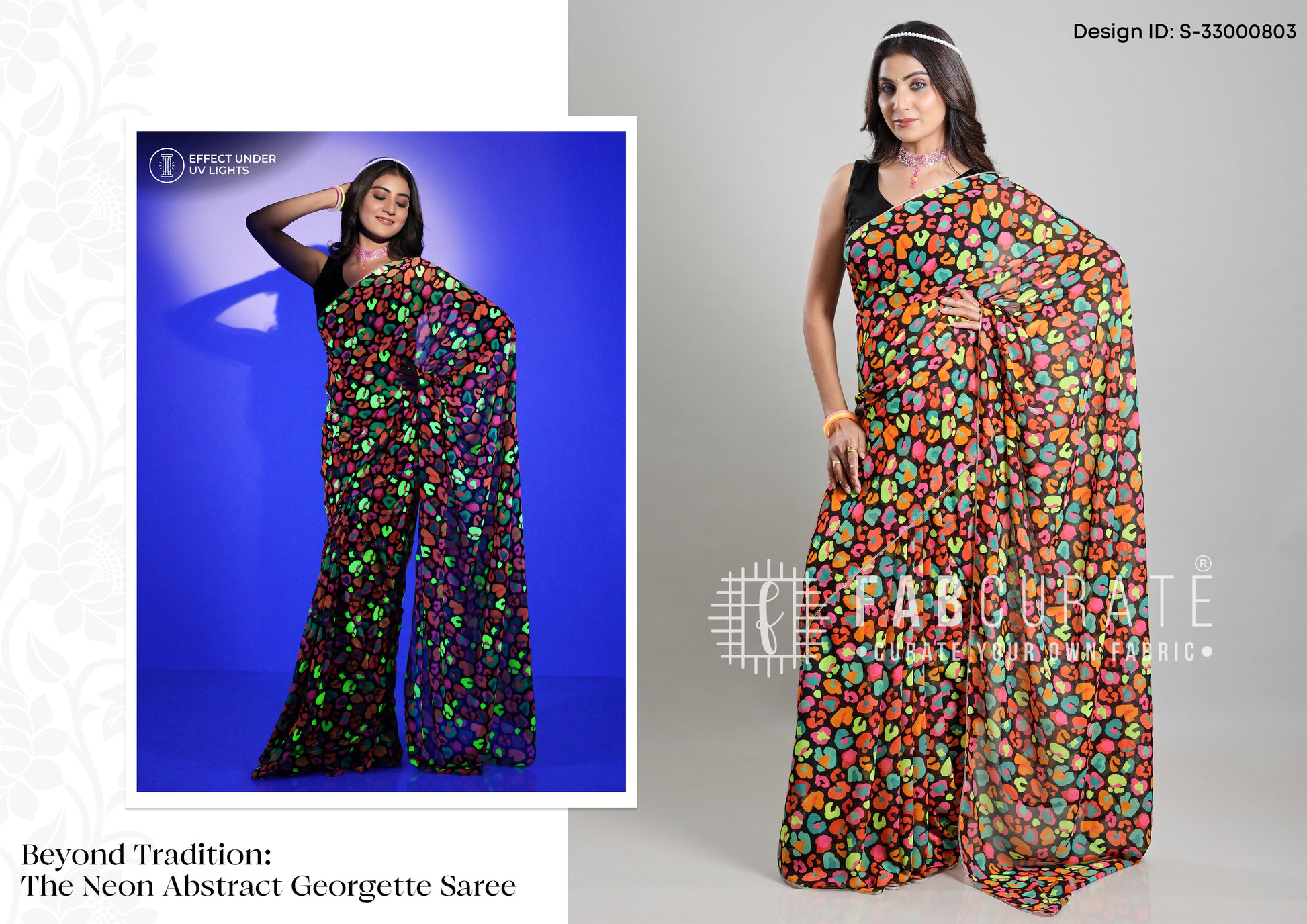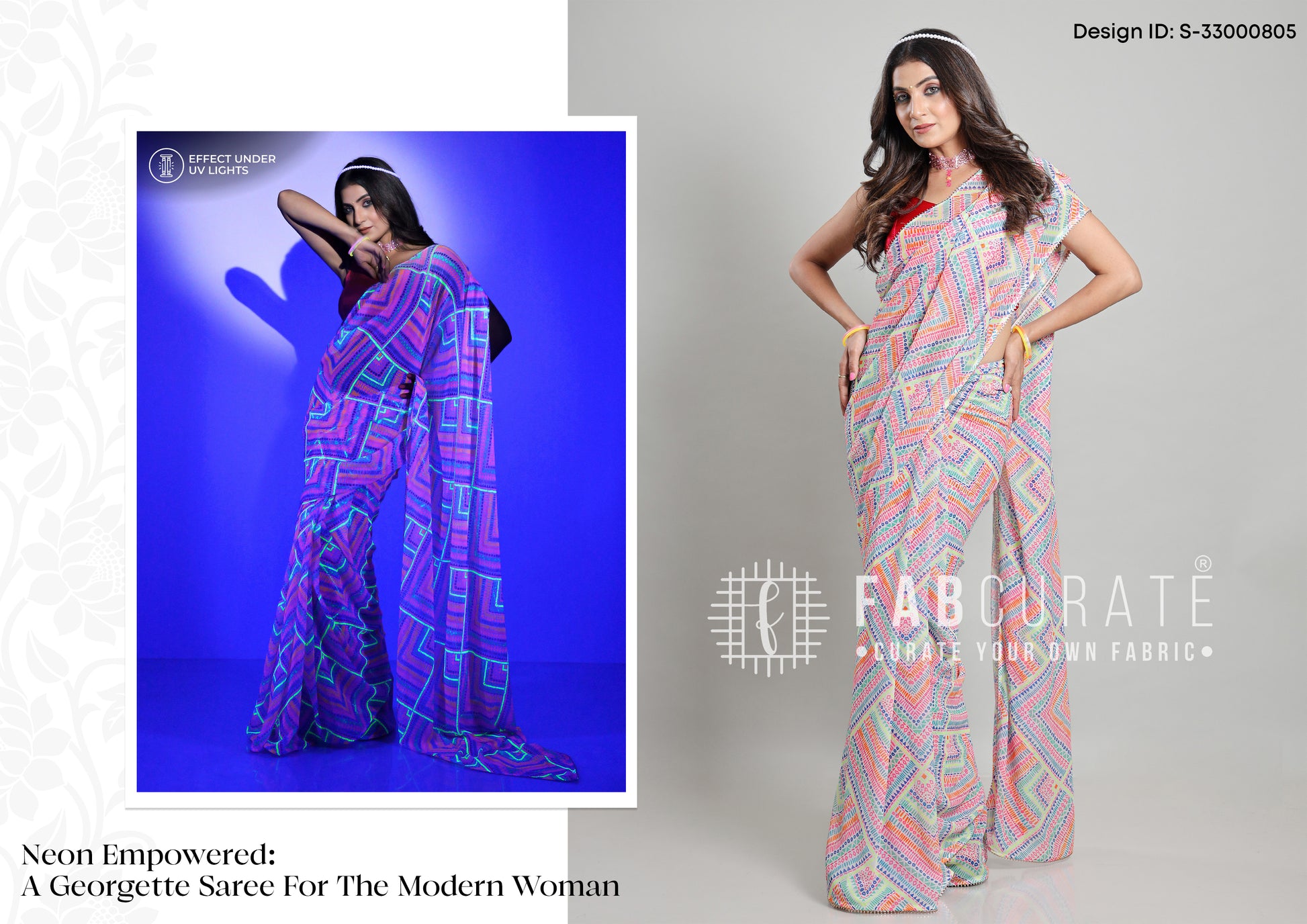 Electric Neon Georgette Sarees Catalogue Fir Wholesale - Set of 5 Sarees
