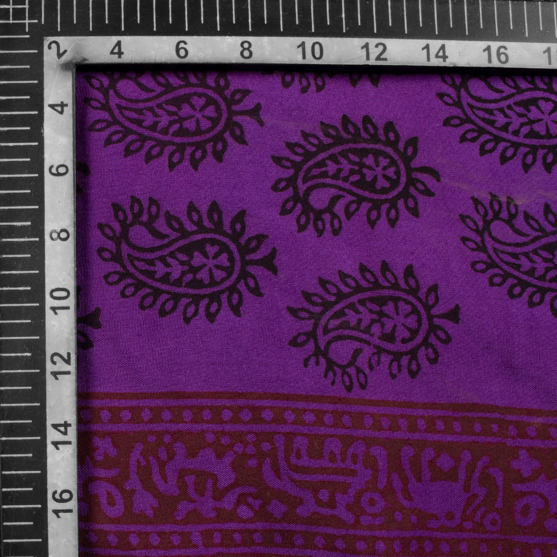 Grape Purple And Black Paisely Pattern Bagh Print Handblock Natural Dye Rayon Fabric