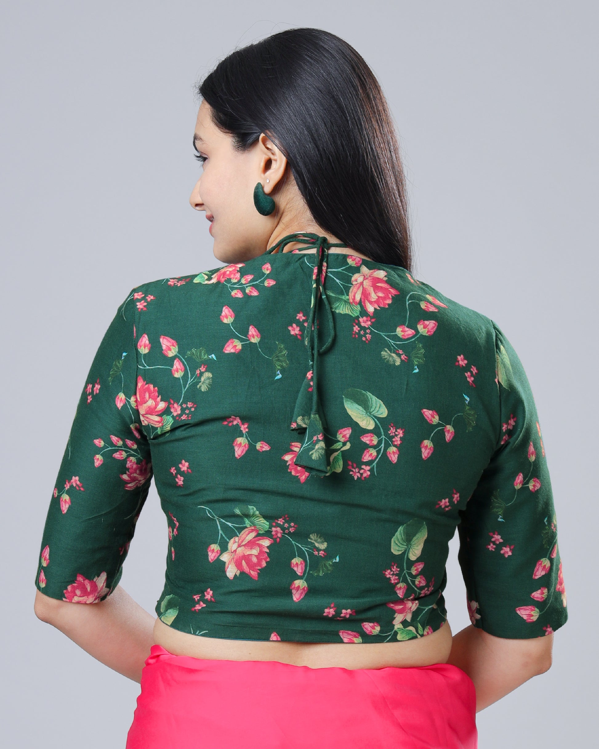 Green Rose Floral Tie-Up Neck Pure Cotton Blouse
