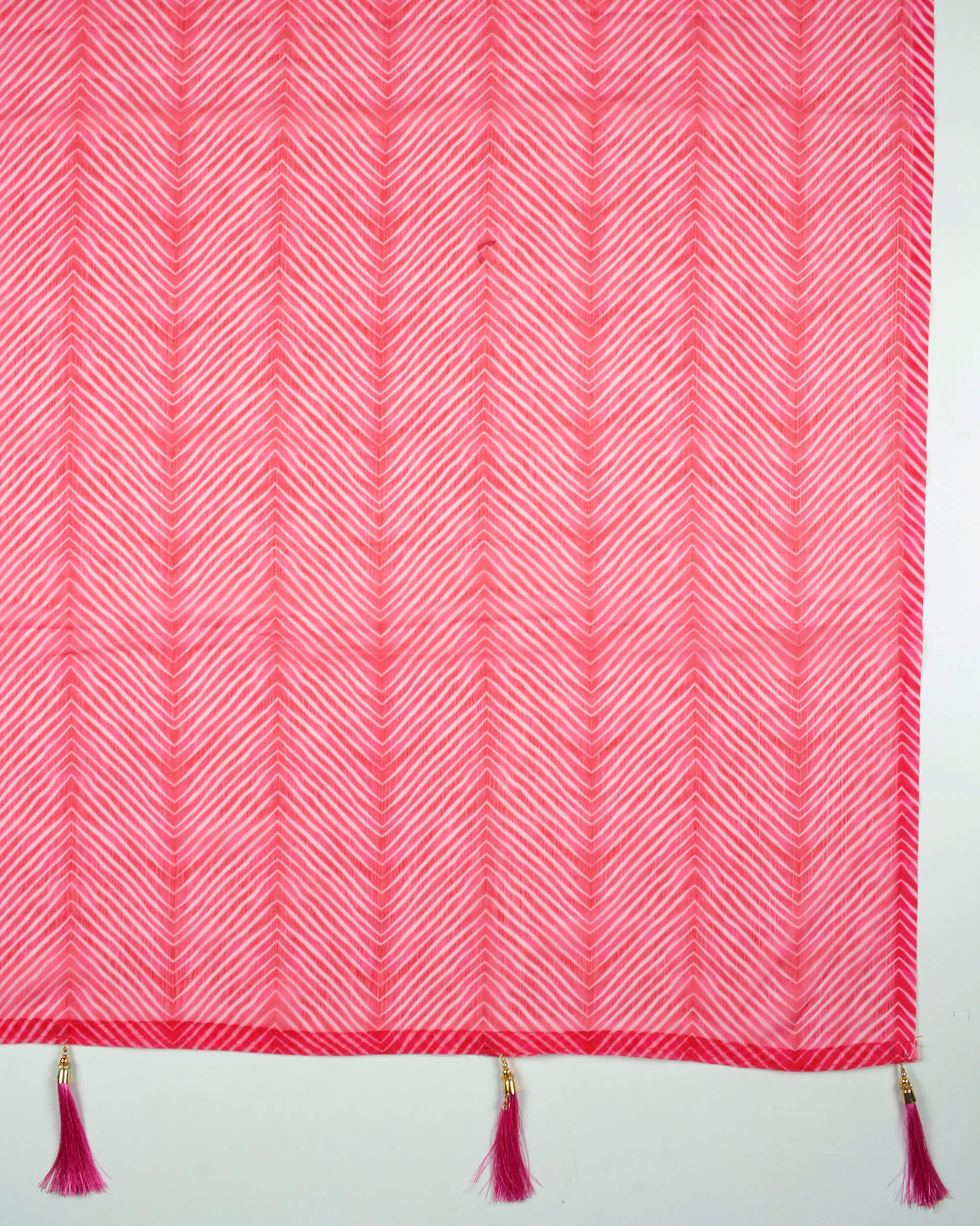 Hot Pink And White Chevron Pattern Digital Print Georgette Dupatta With Tassels
