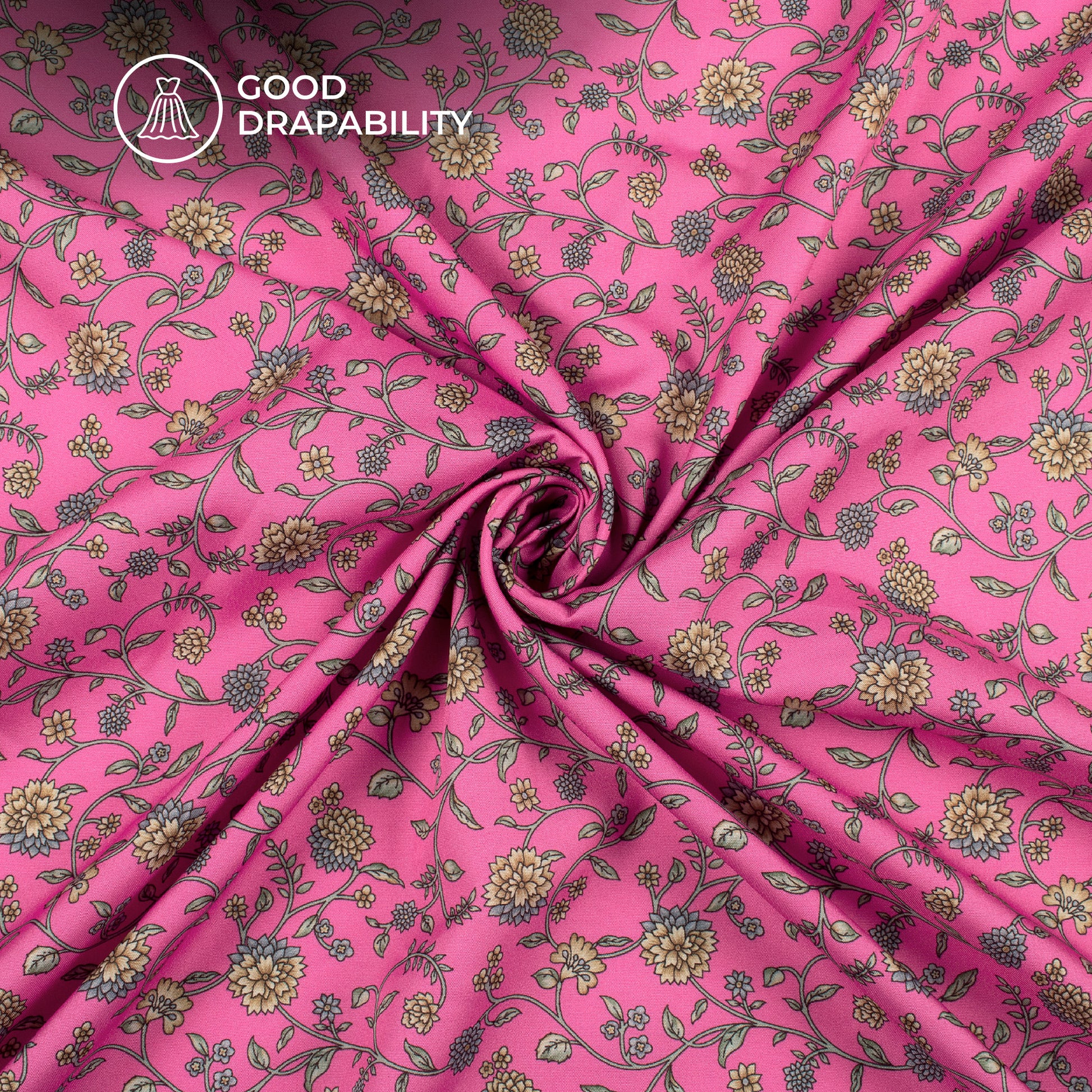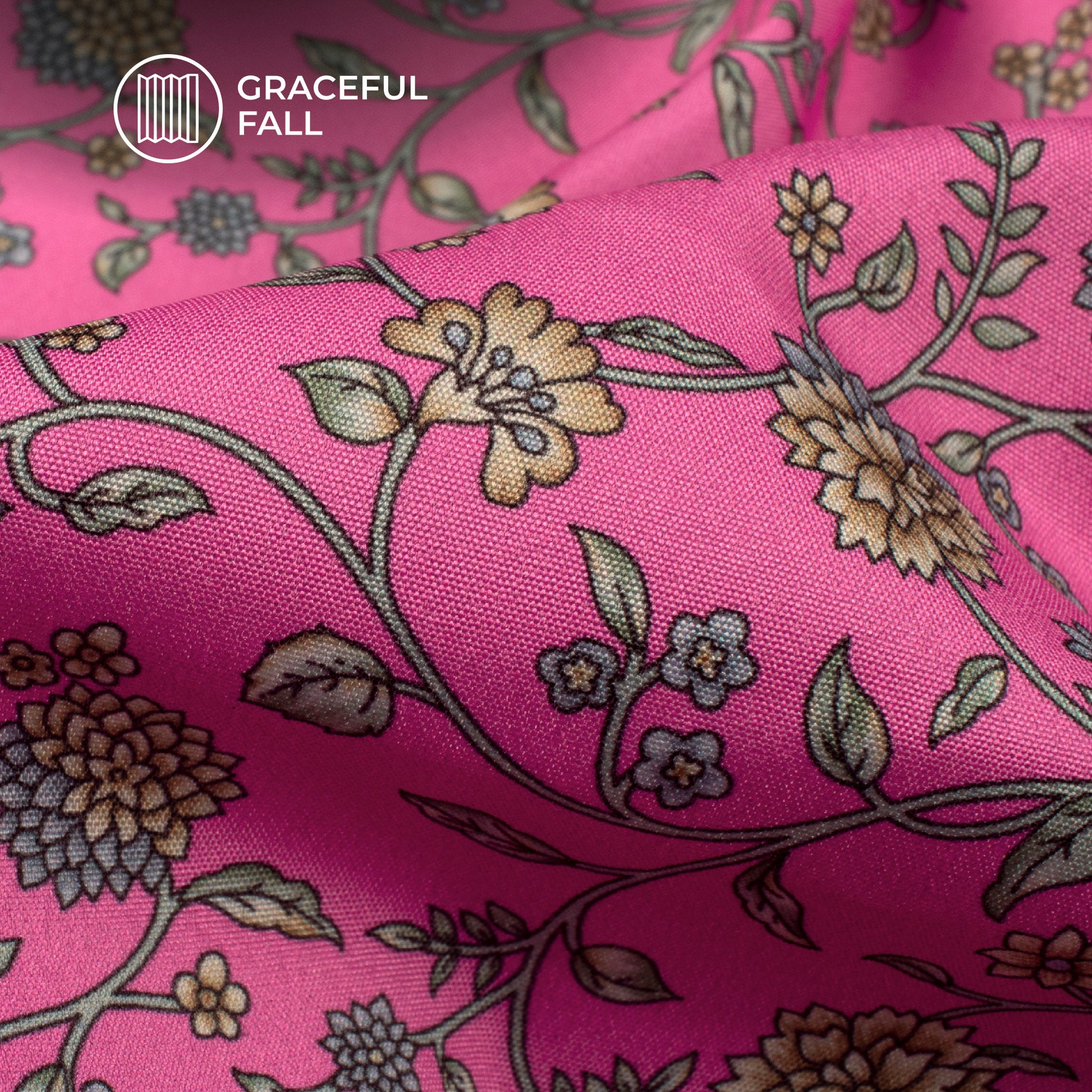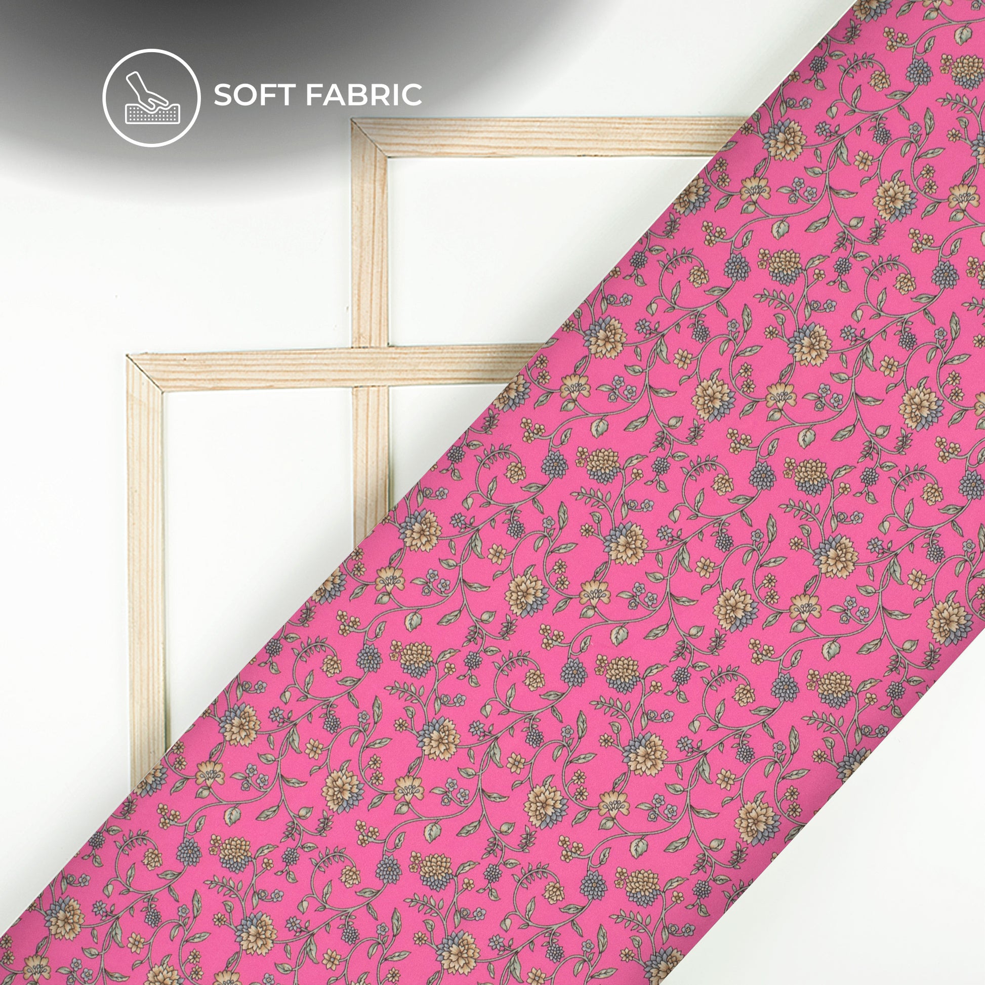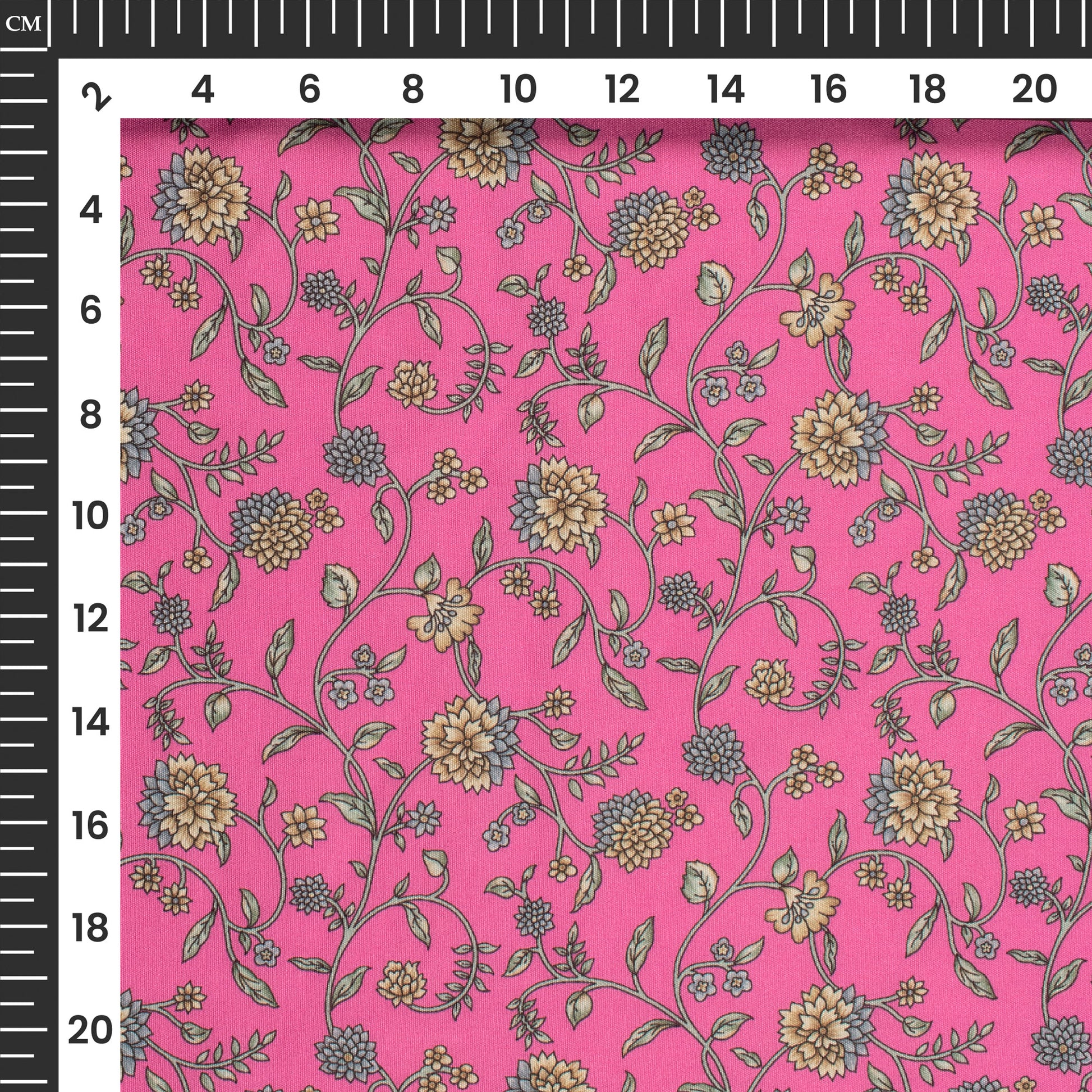 Hot Pink Floral Digital Print Butter Crepe Fabric