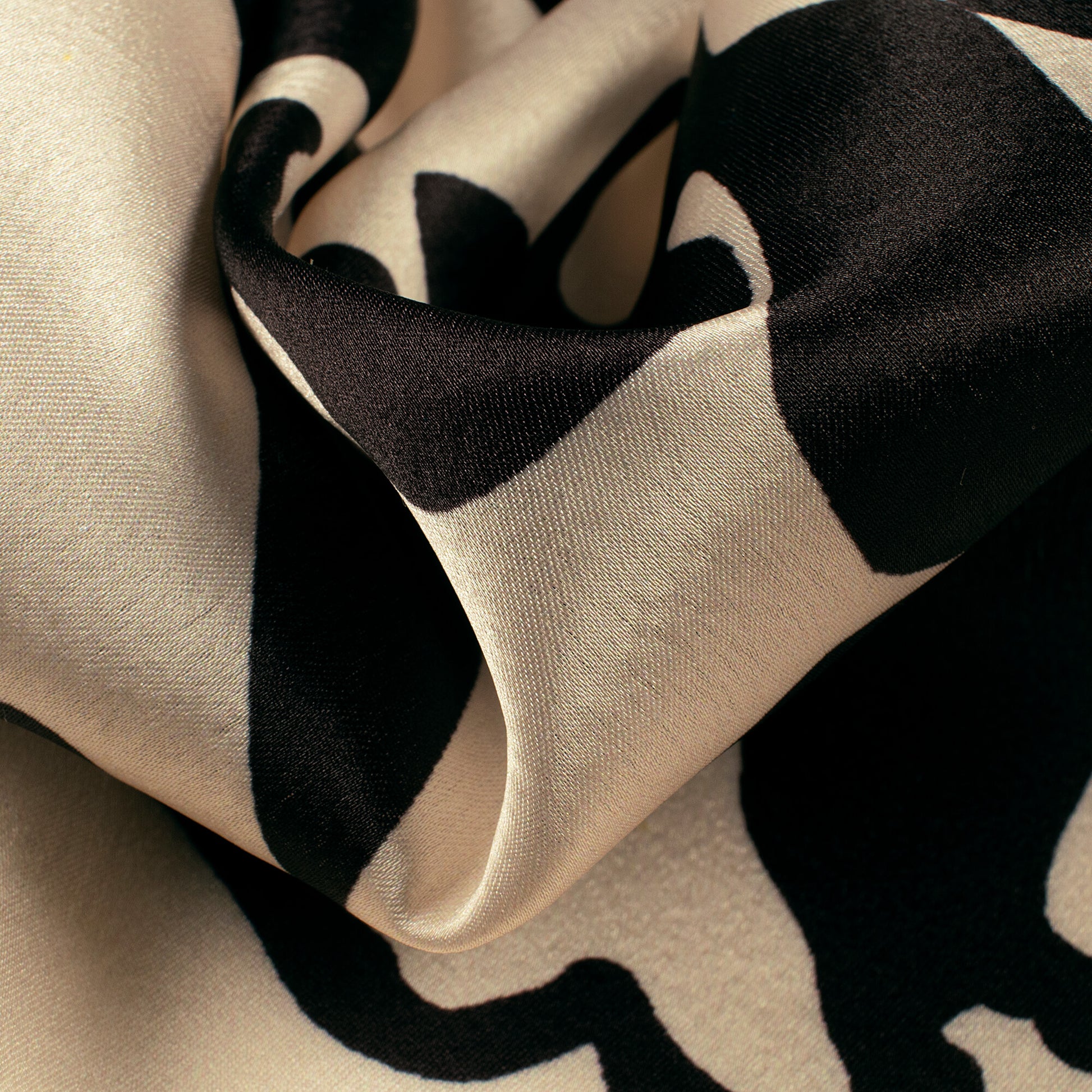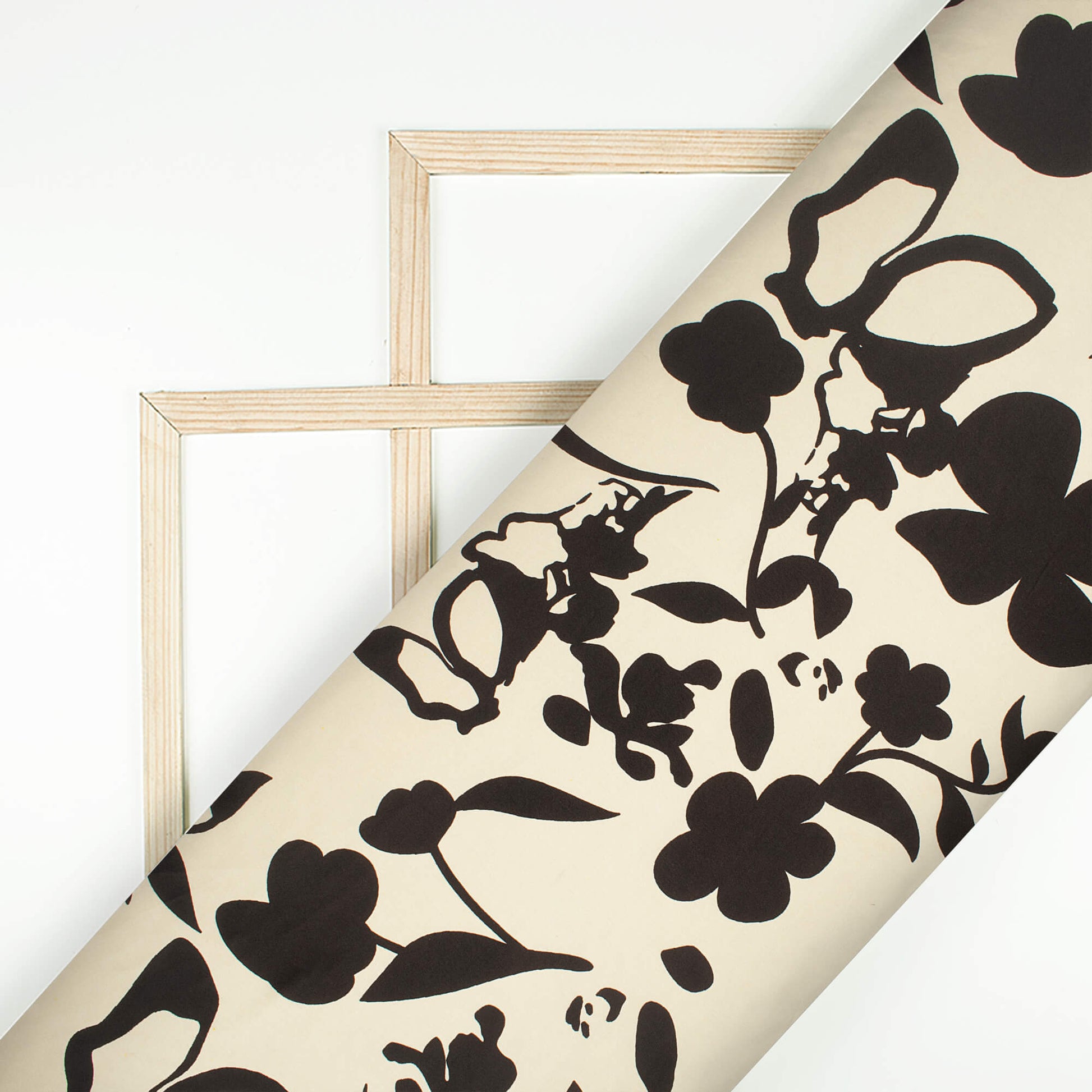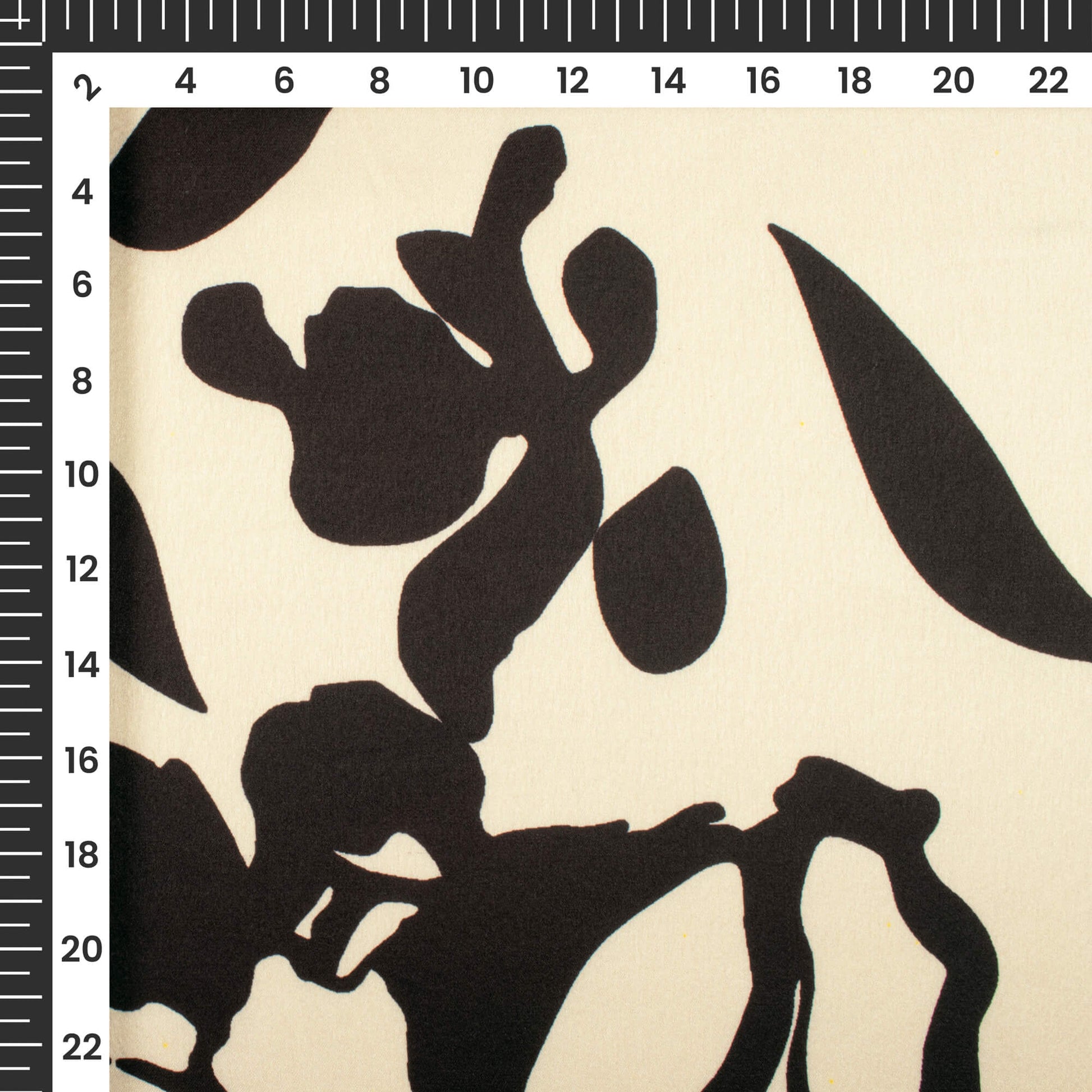 Ivory Cream And Black Floral Digital Print Japan Satin Fabric