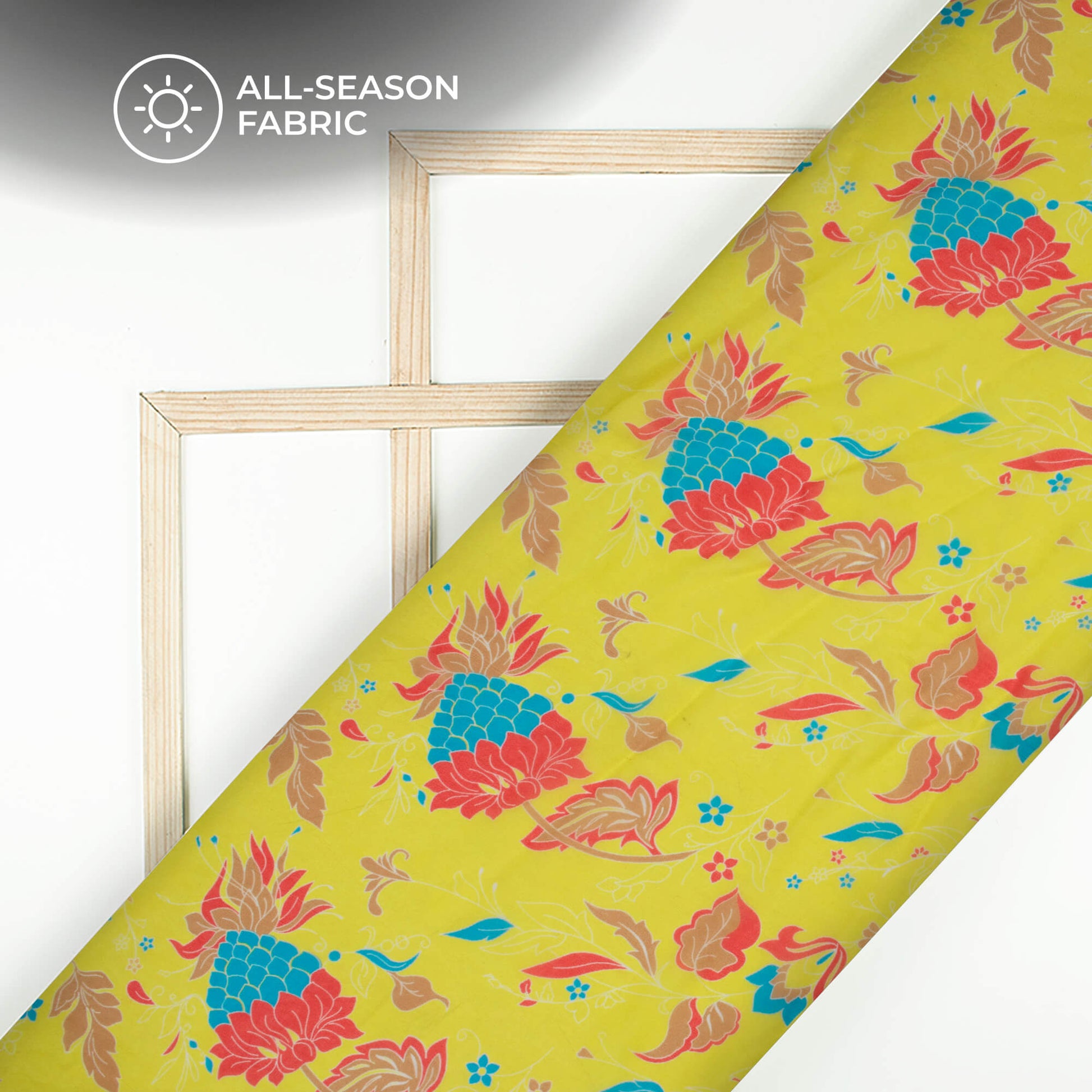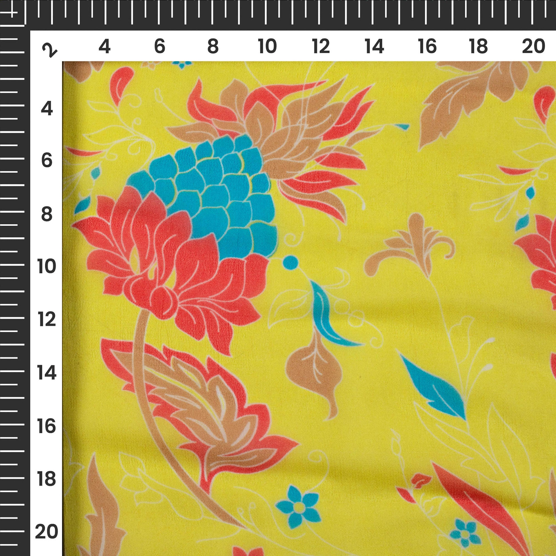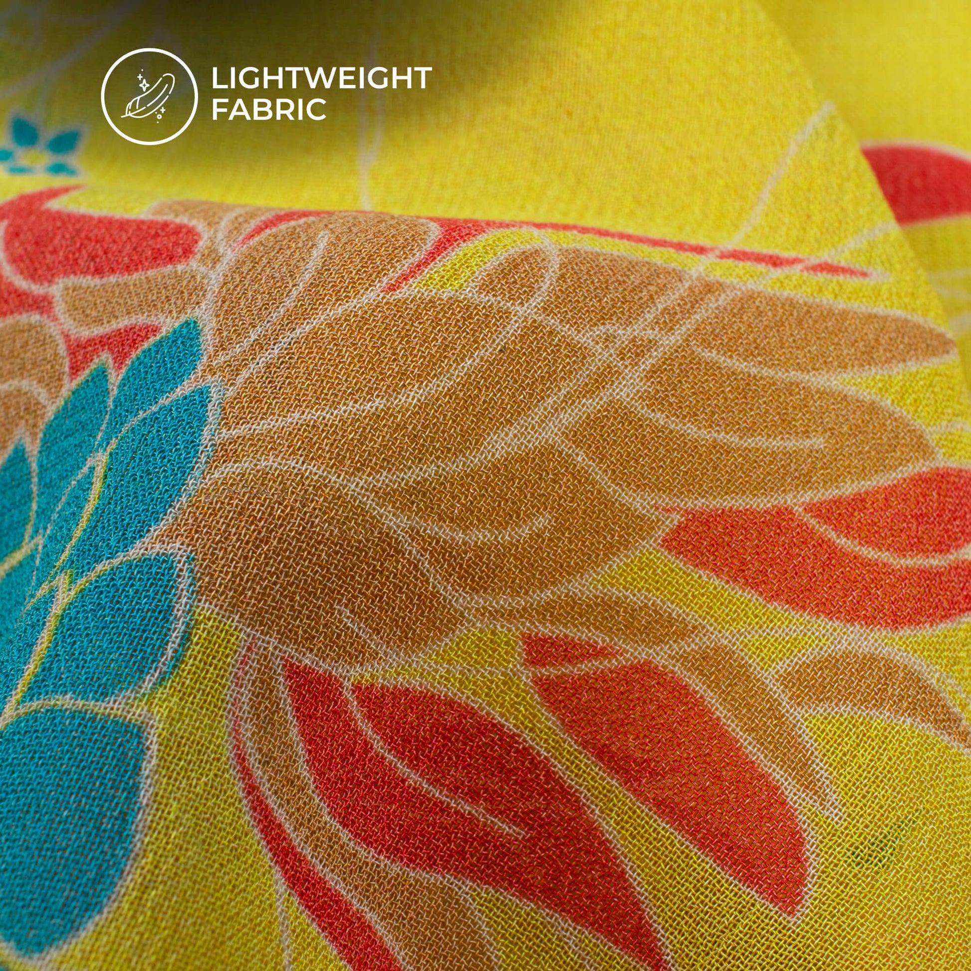 Lemon Yellow Floral Digital Print Pure Georgette Fabric