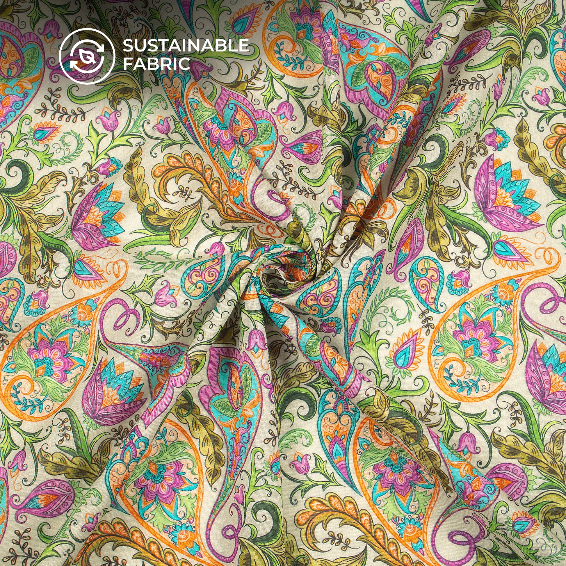 Paisley Floral Digital Print Cotton Mulmul Fabric