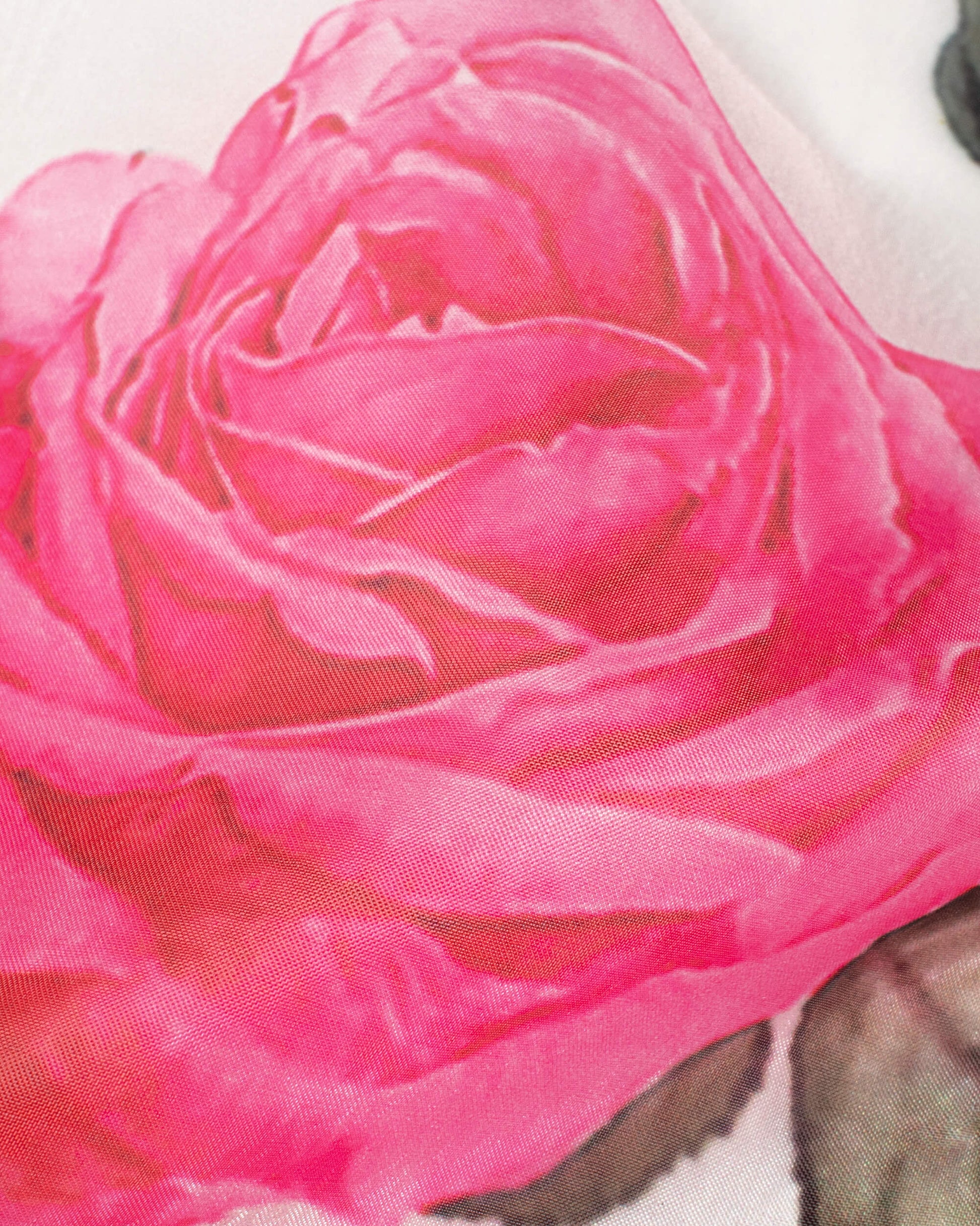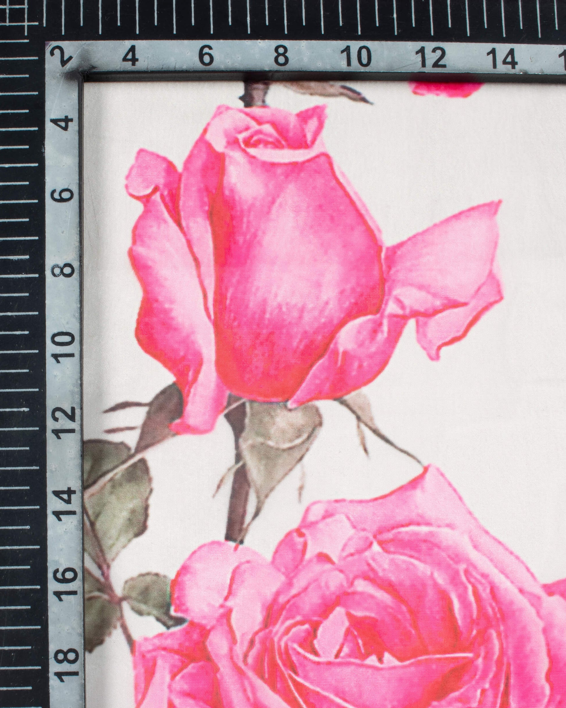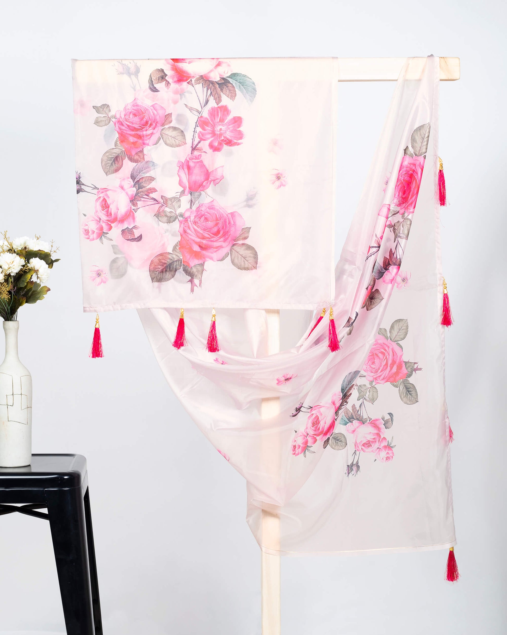 Off White And Hot Pink Floral Pattern Digital Print Organza Satin Dupatta With Tassels