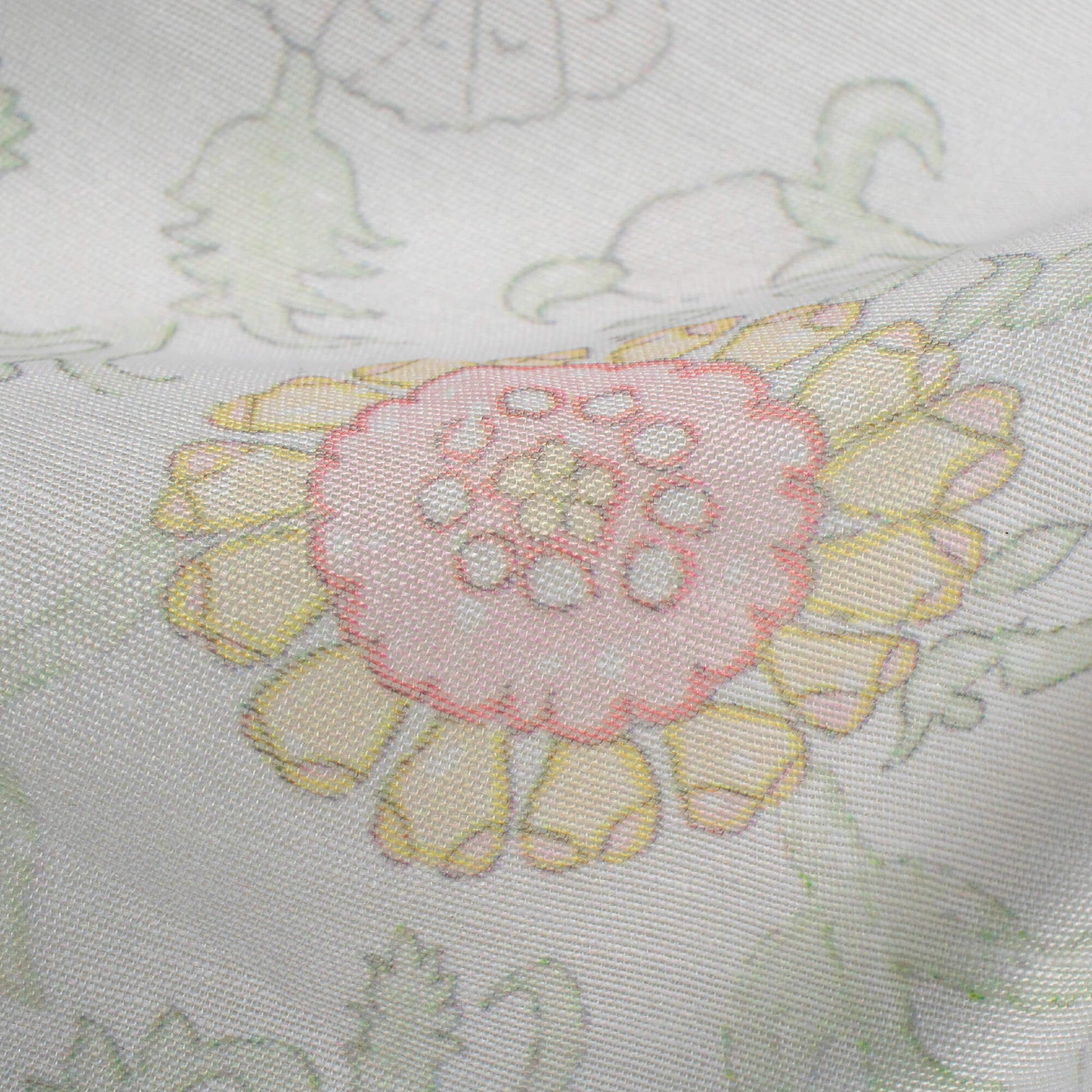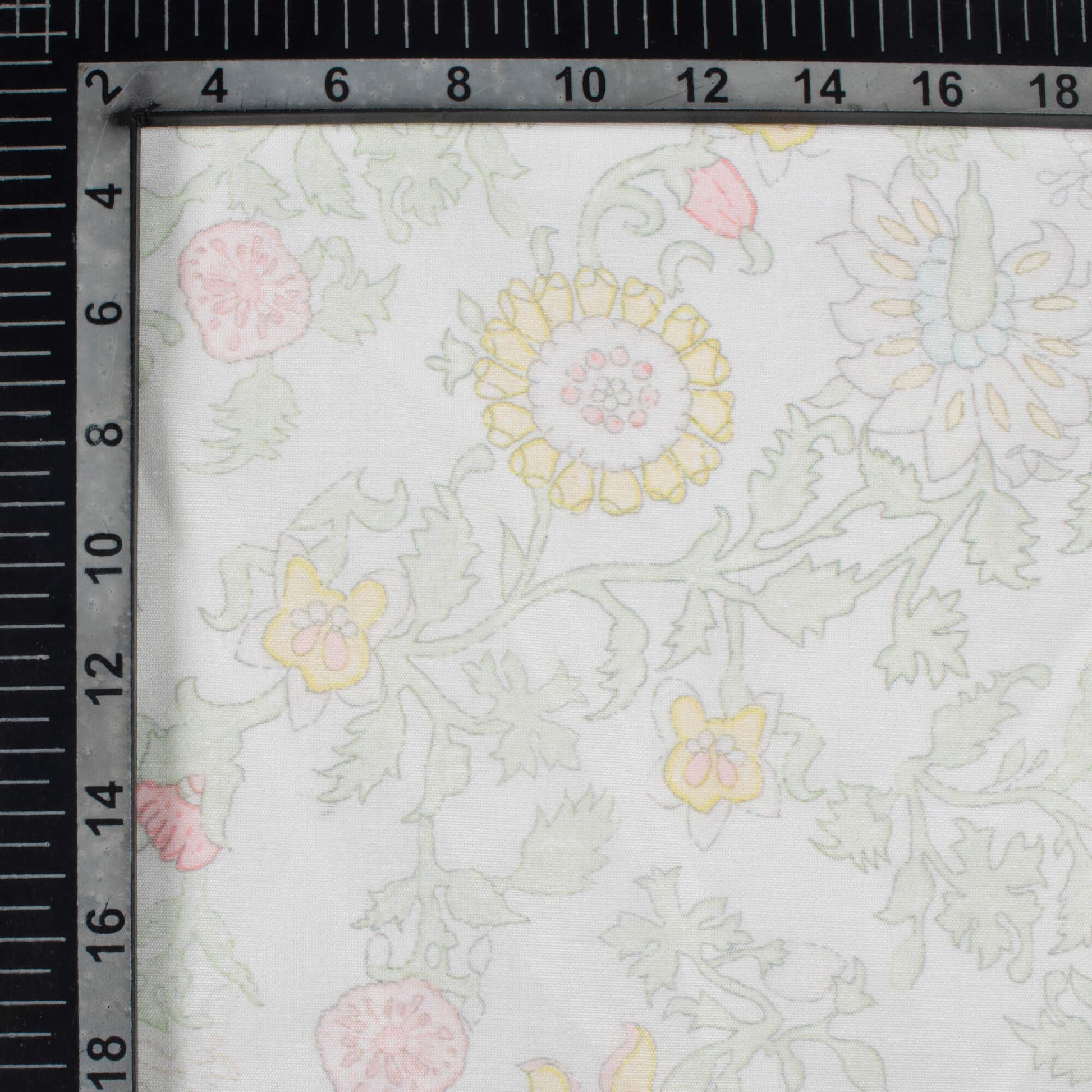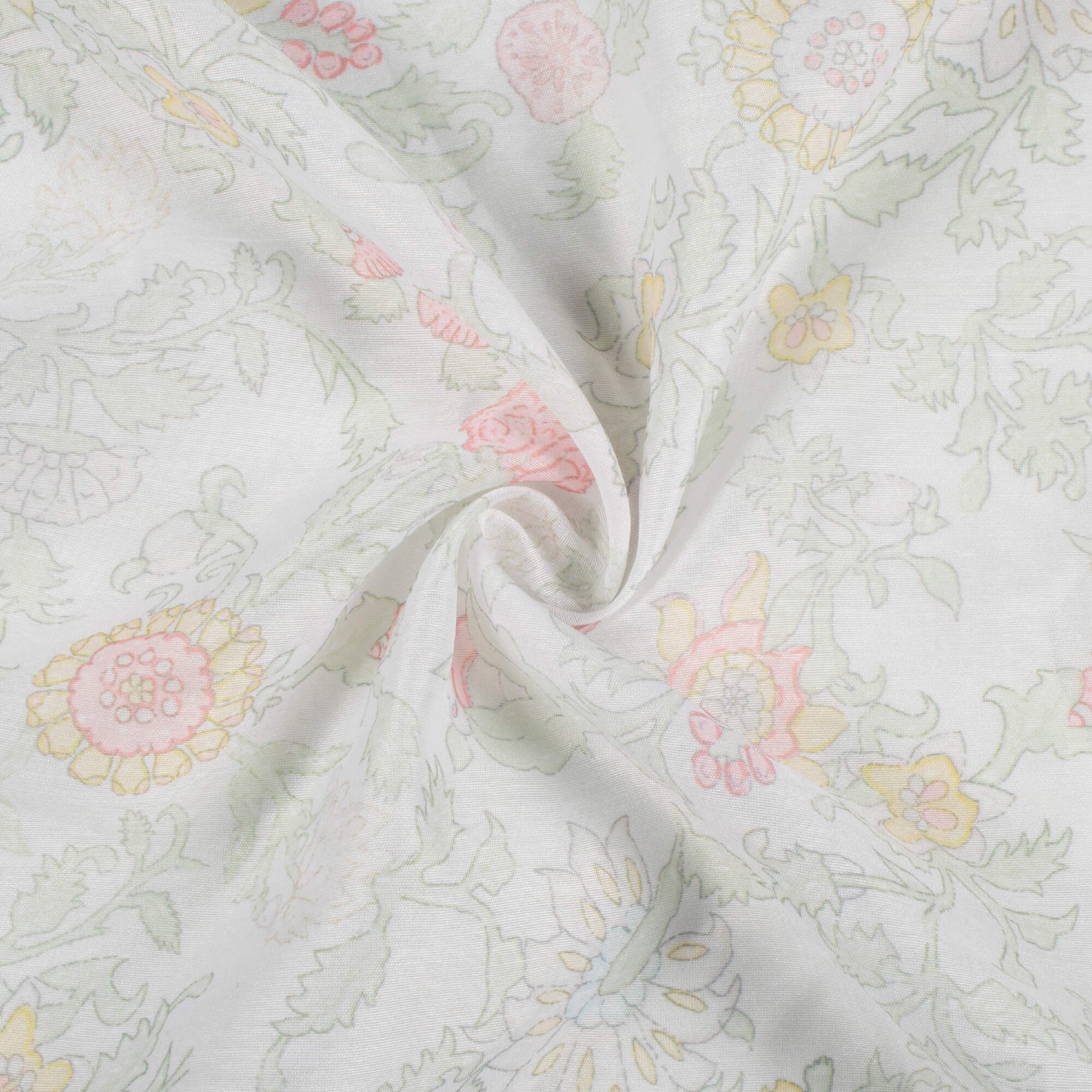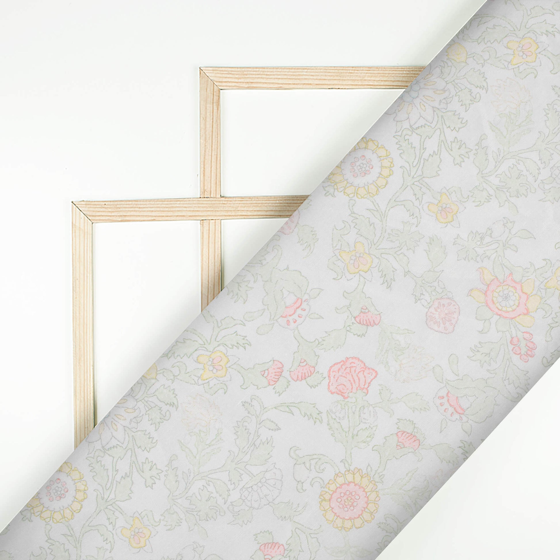 Pastel Green And Pale Pink Floral Pattern Digital Print Chanderi Fabric