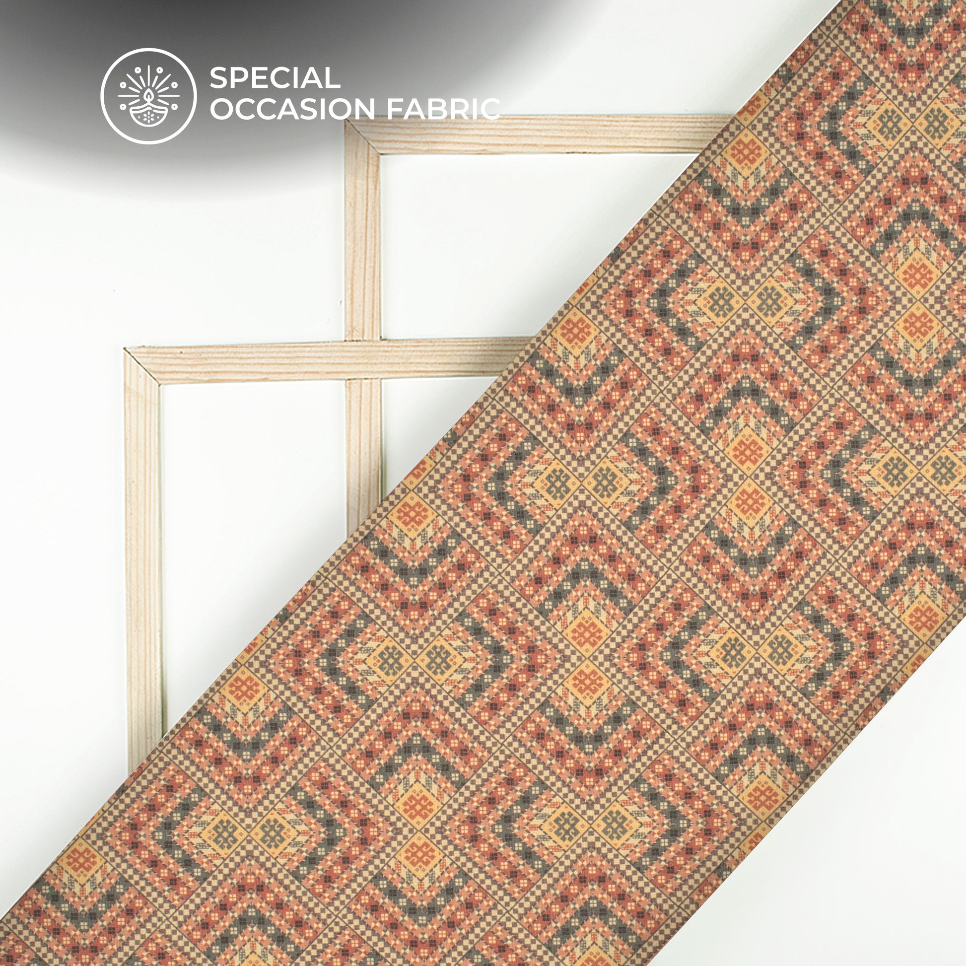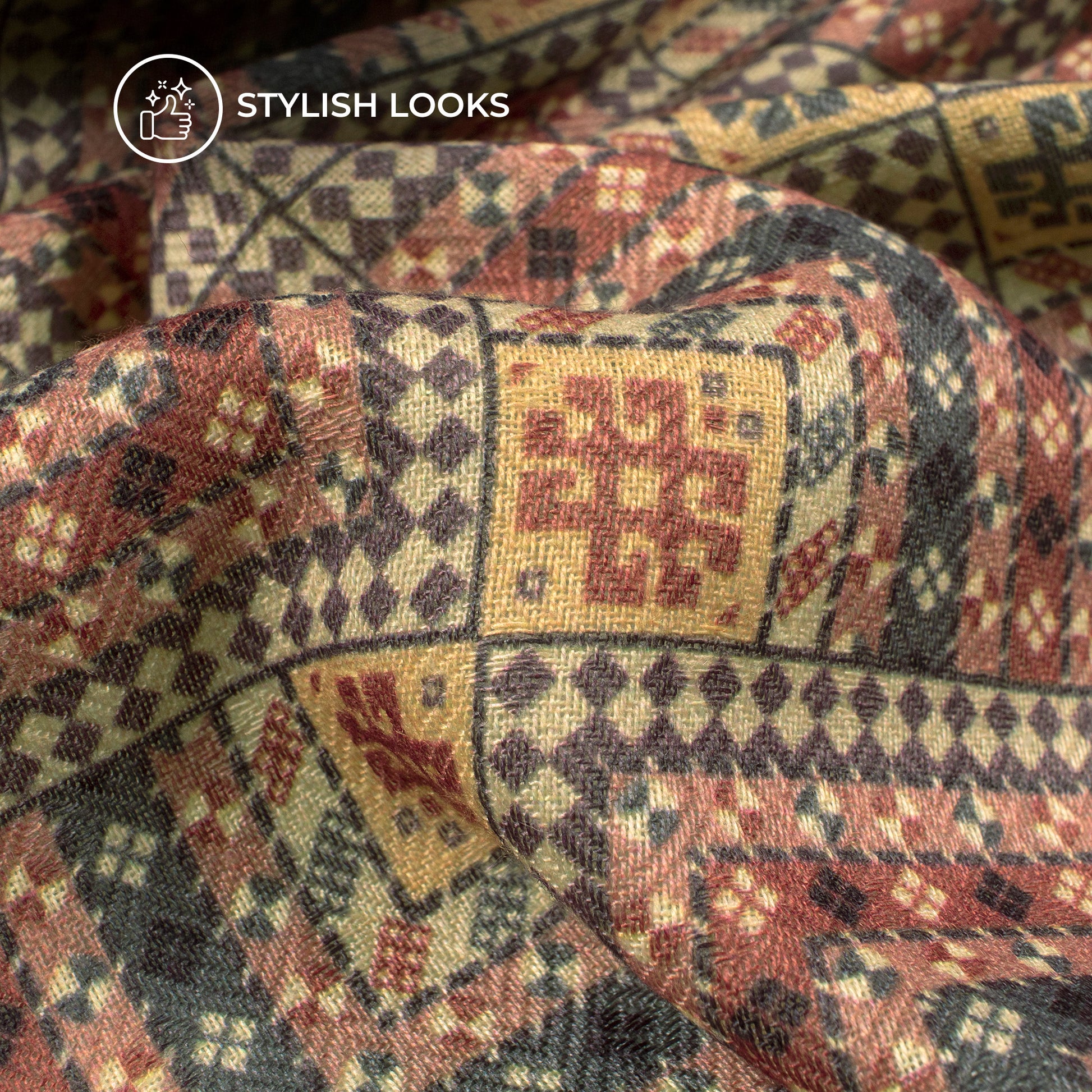 Peach Pink Traditional Digital Print Elegant Blend Pashmina Fabric