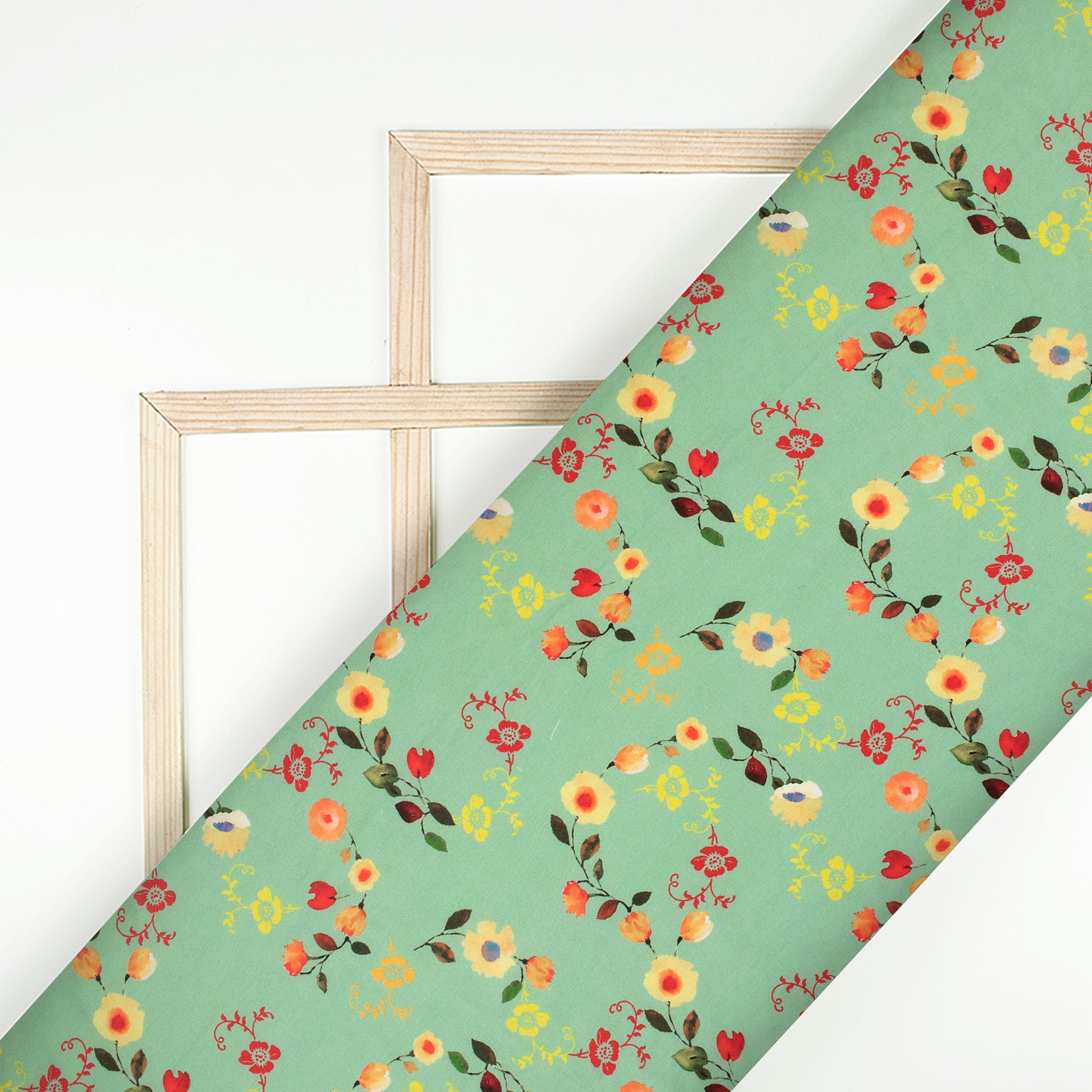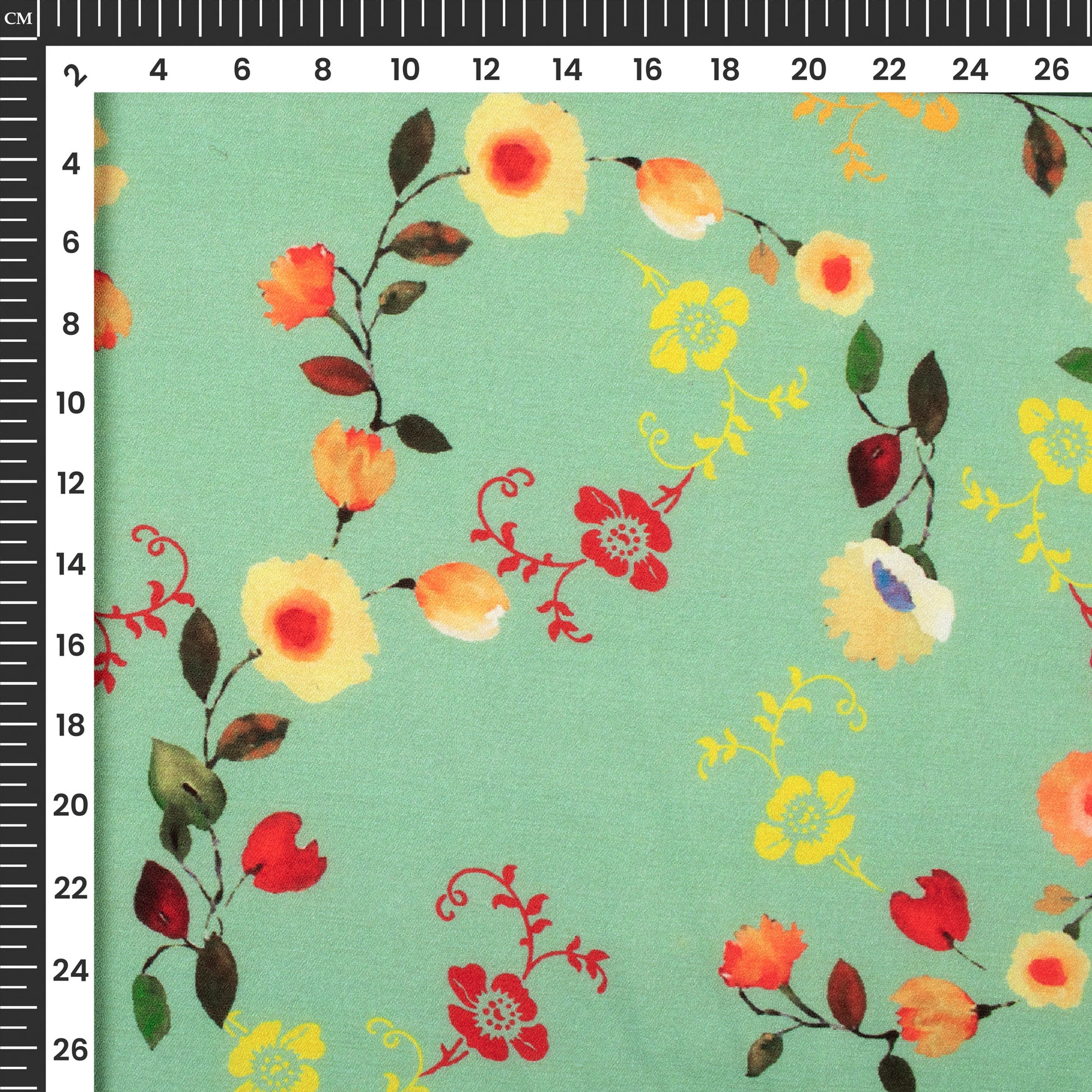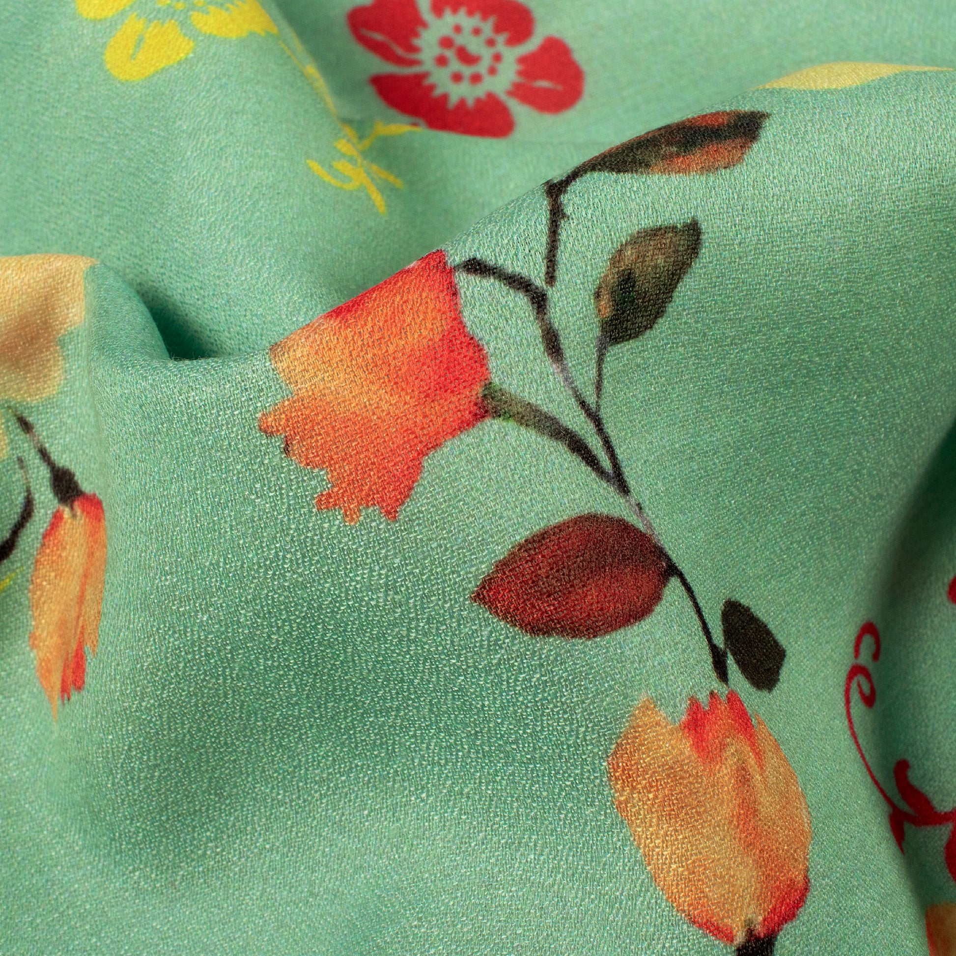 Pistachio Floral Digital Print Moss Crepe Fabric