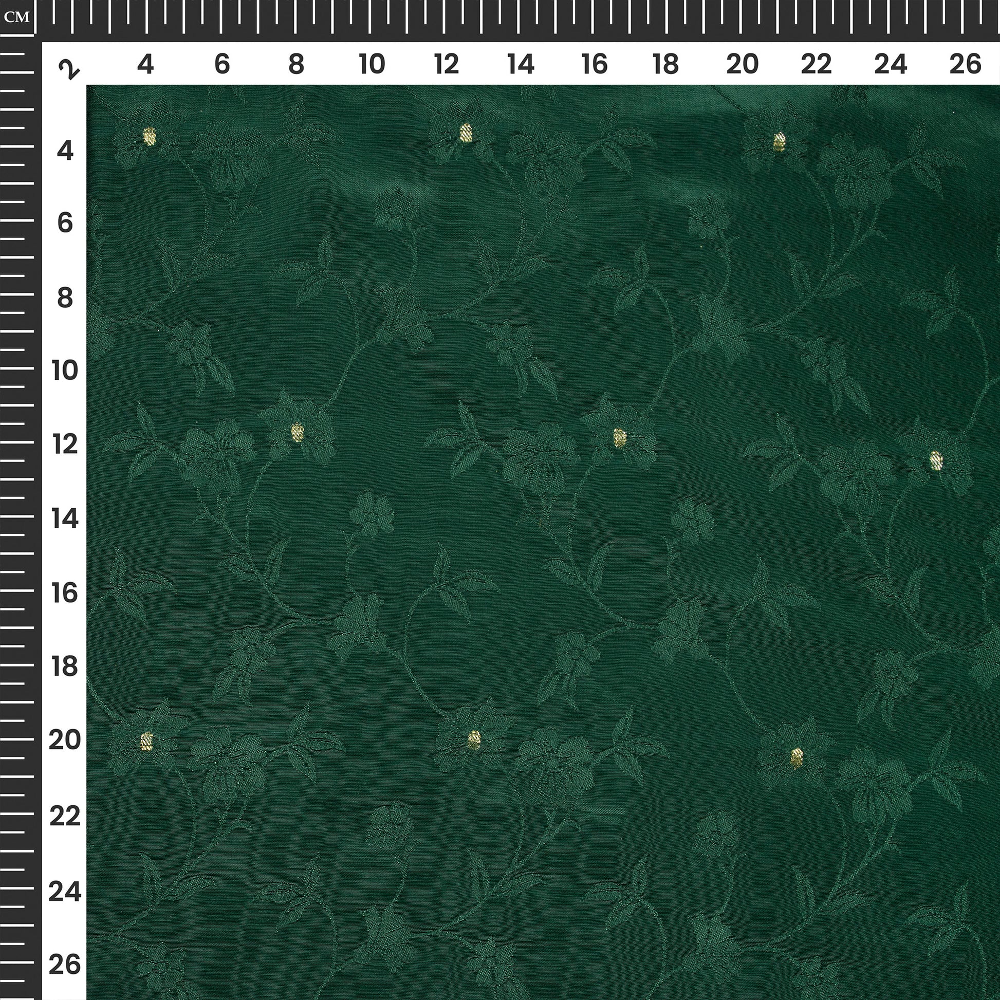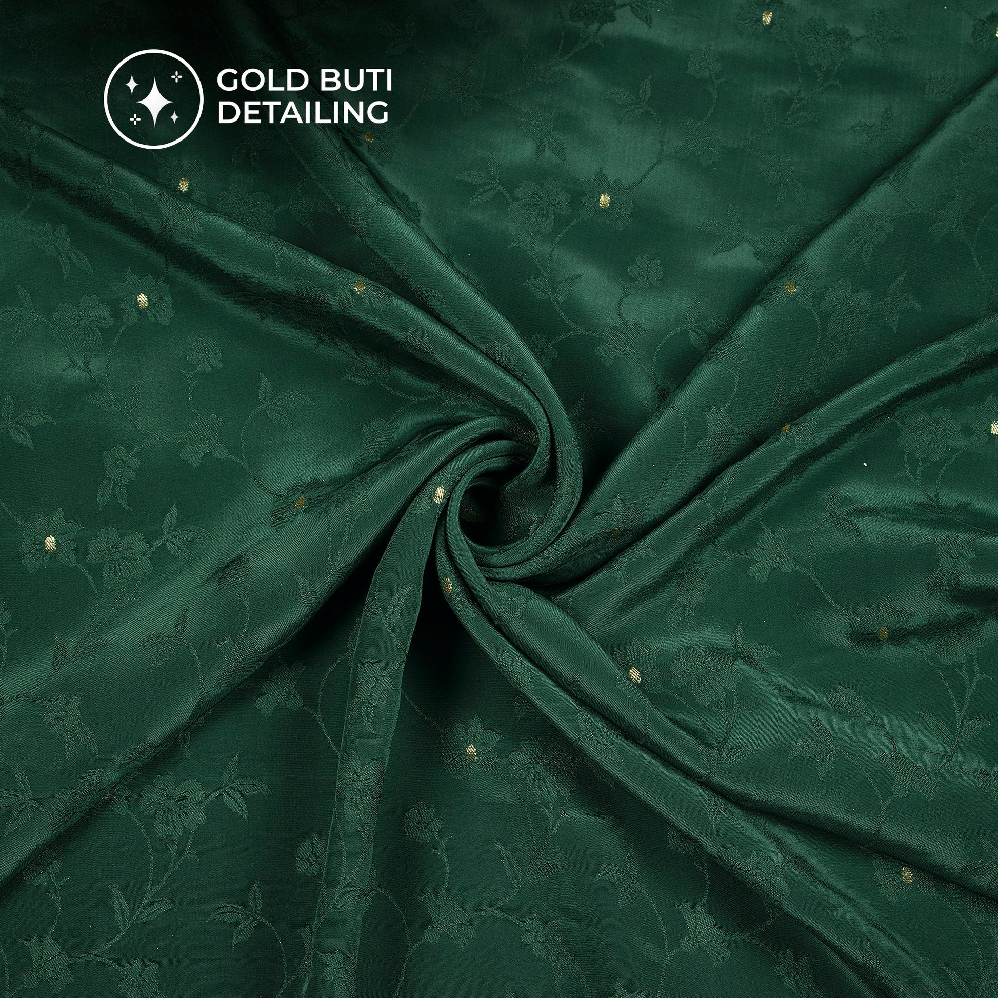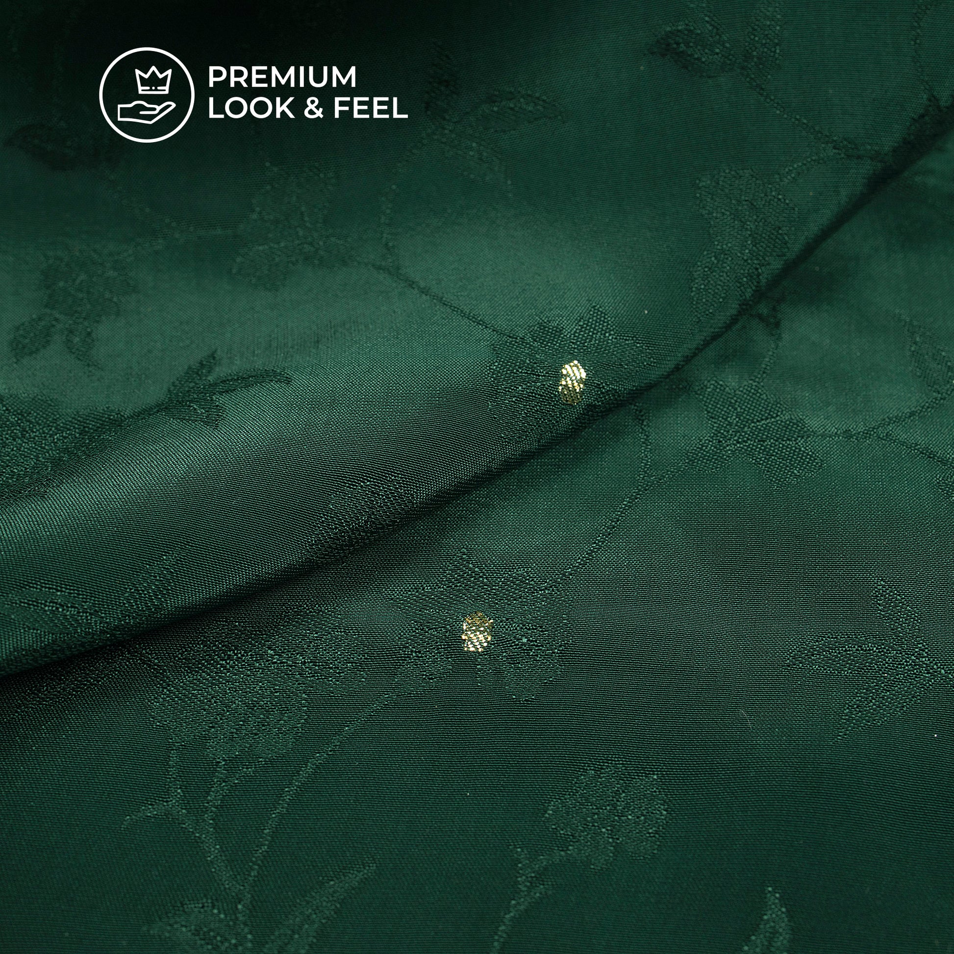 Plain Dark Green Golden Booti Floral Jacquard Work Bemberg Silk Fabric