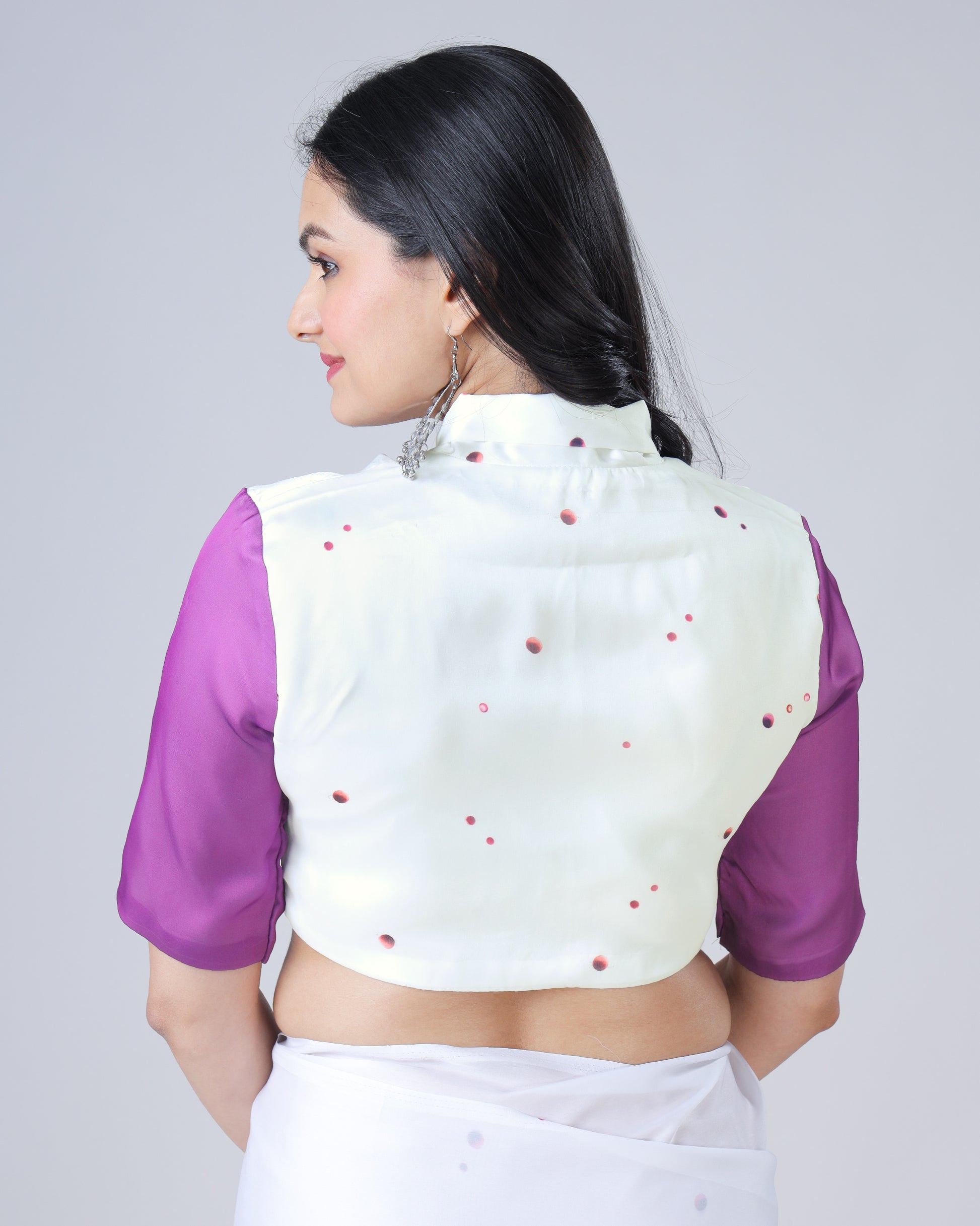 Step into the spotlight with our exquisite Mandala Print Blouse , a perfect blend of traditional artistry and contemporary sophistication. Crafted from luxurious georgette satin, this ensemble promises a graceful drape and a silky-smooth feel, ensuring you look and feel your best at every celebration.