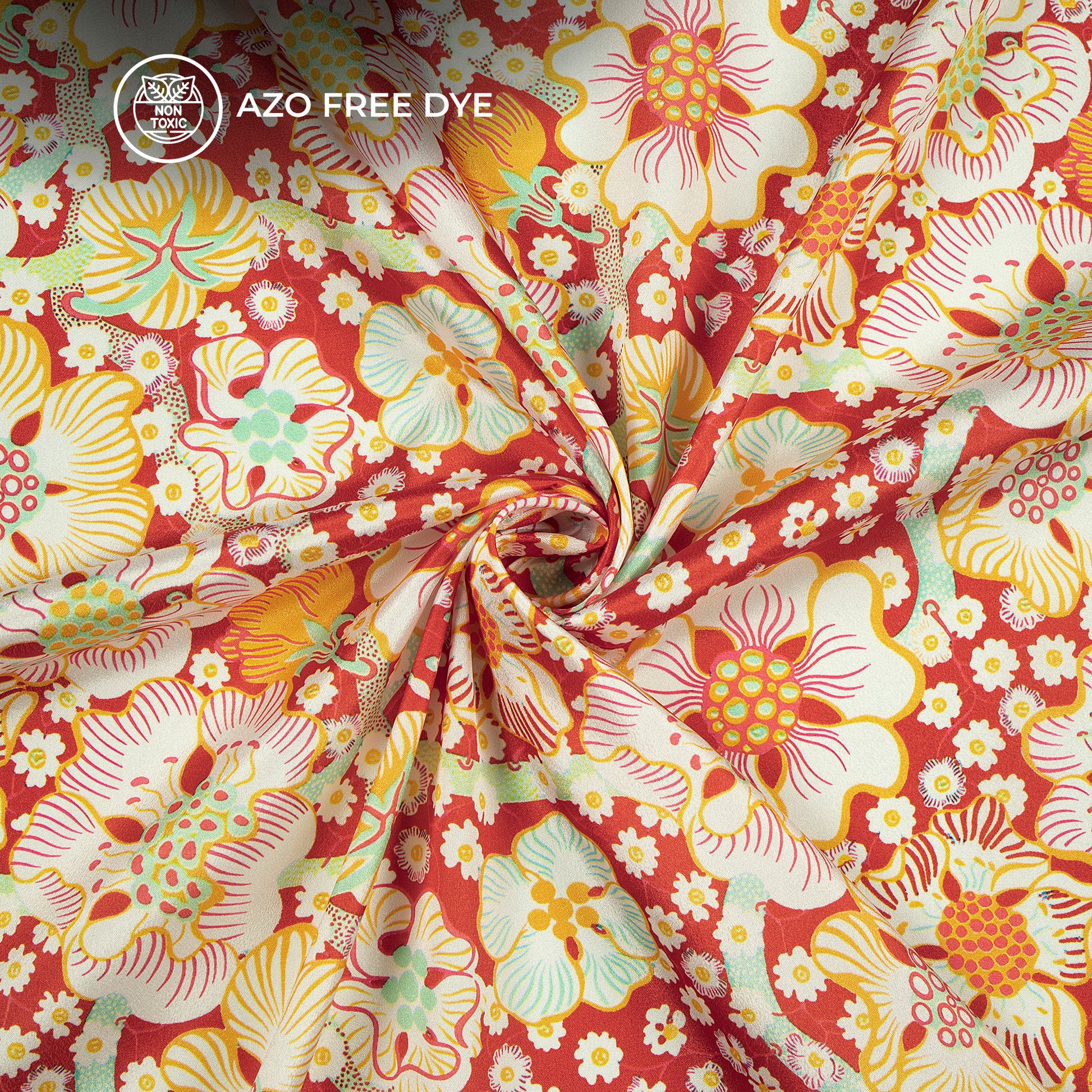 Seamless Vintage Floral Geometric Digital Print Crepe Silk Fabric