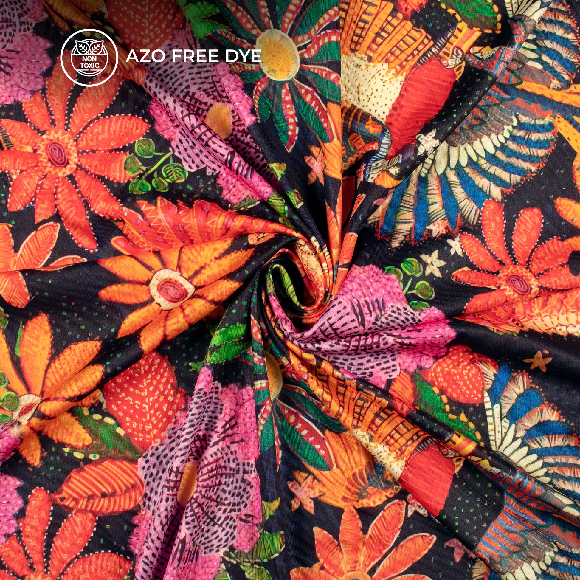 Lycra means elastane in nature or stretchable materials. Fabcurate’s poly Lycra digital print collection is specially curated for you. There are variety of patterns like quirky, Floral, Animal, Kids print and many more to select from. This fabric is very durable and has crinkle surface which will suits to any kind of costumes starting from pencil skirt to blouses or jumpsuits to palazzos.