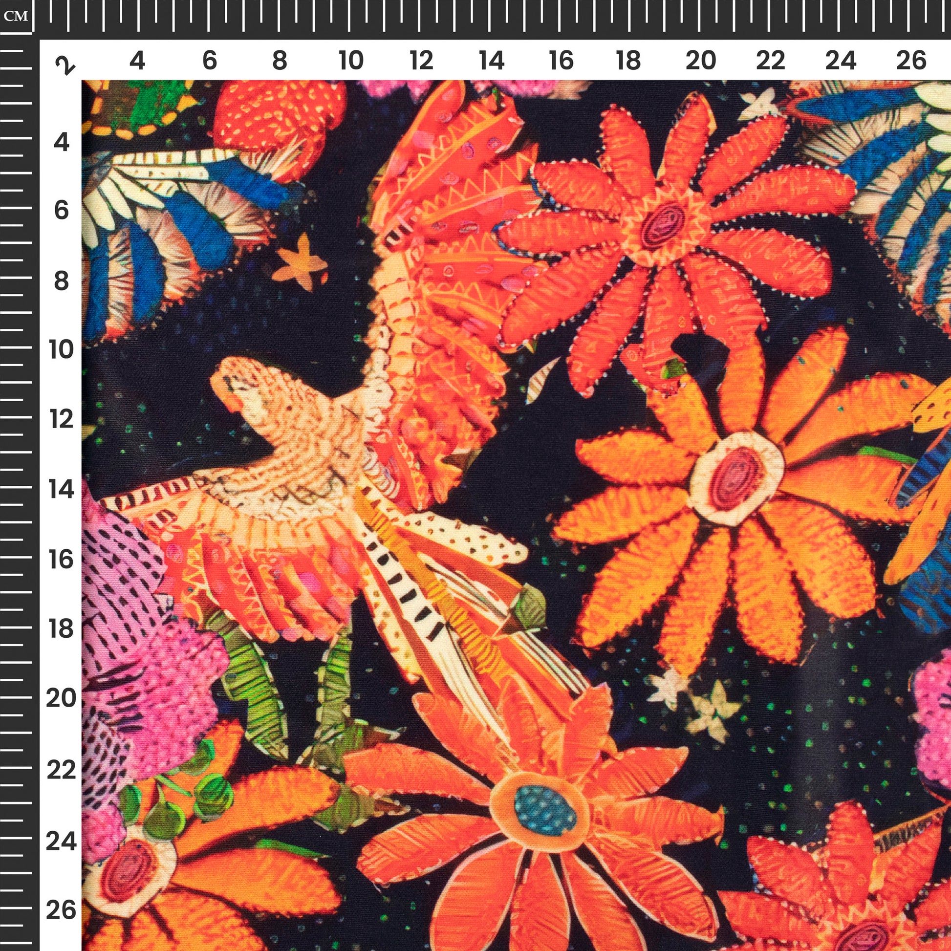 Stylish Pink Floral Digital Print Lycra Fabric (Width 58 Inches)