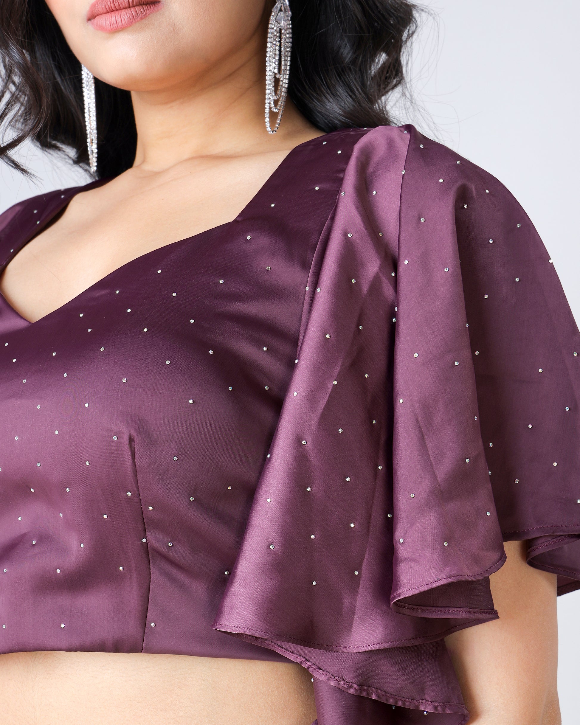 Svarovski Stone Work Blouse With Romantic Ruffles Sleeve