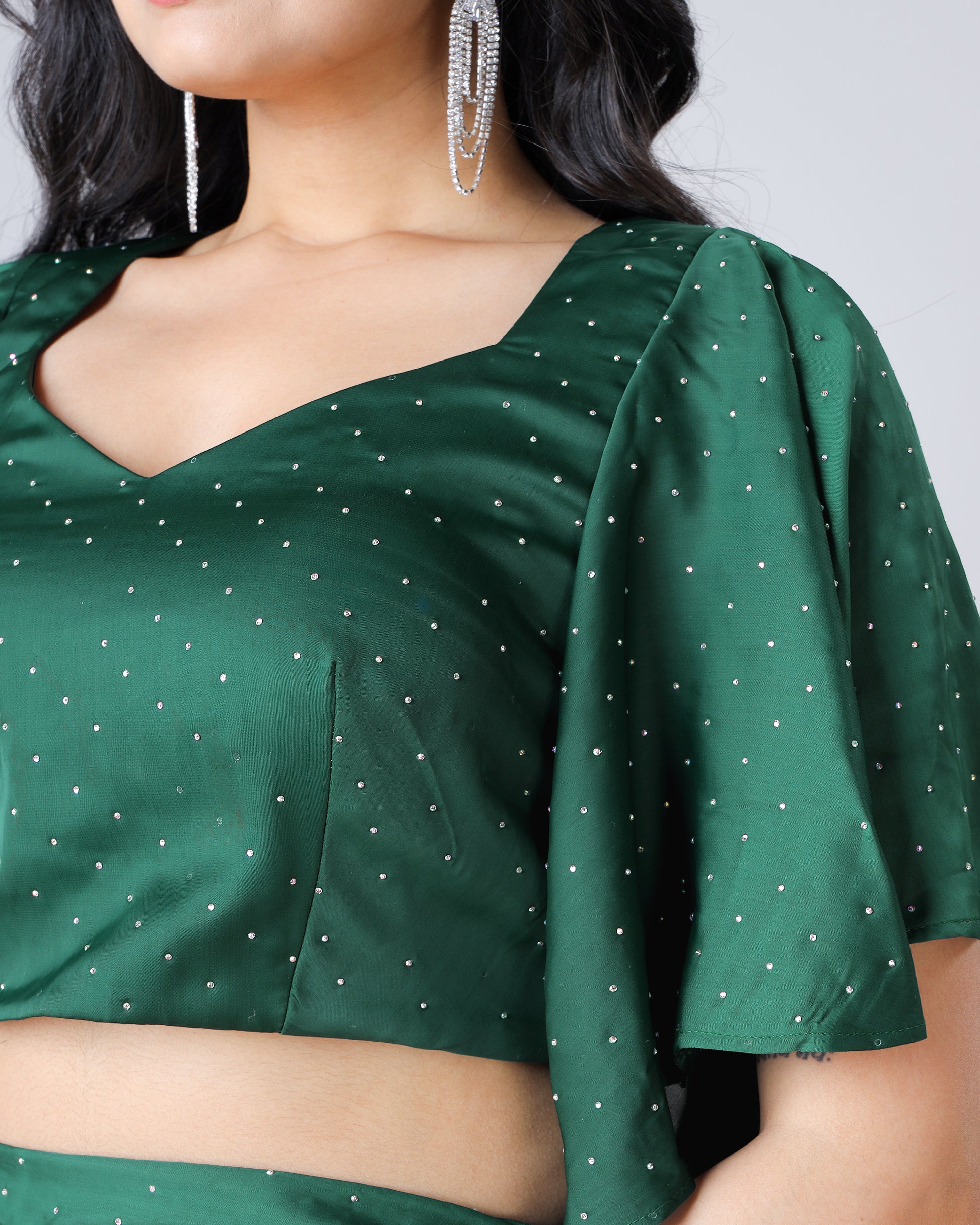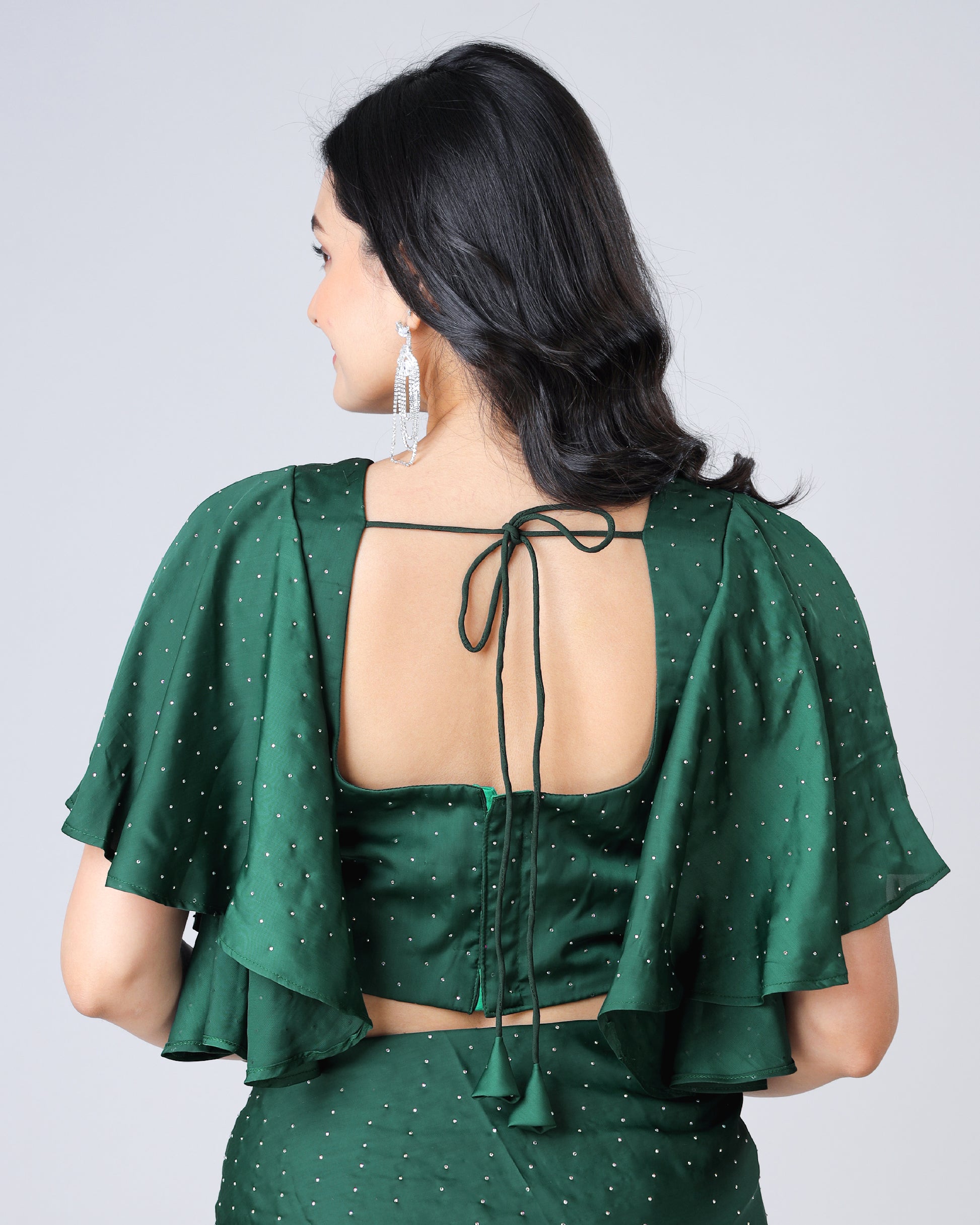 Svarovski Stone Work Blouse With Romantic Ruffles Sleeve