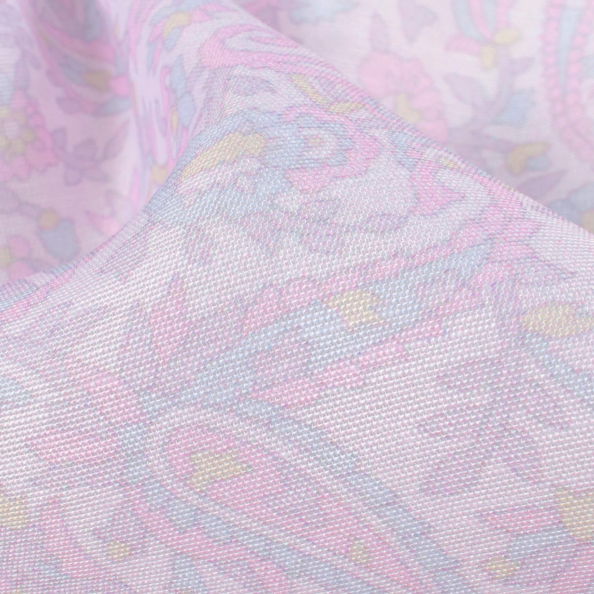 Taffy Pink And Pistachio Green Paisley Pattern Digital Print Chanderi Fabric