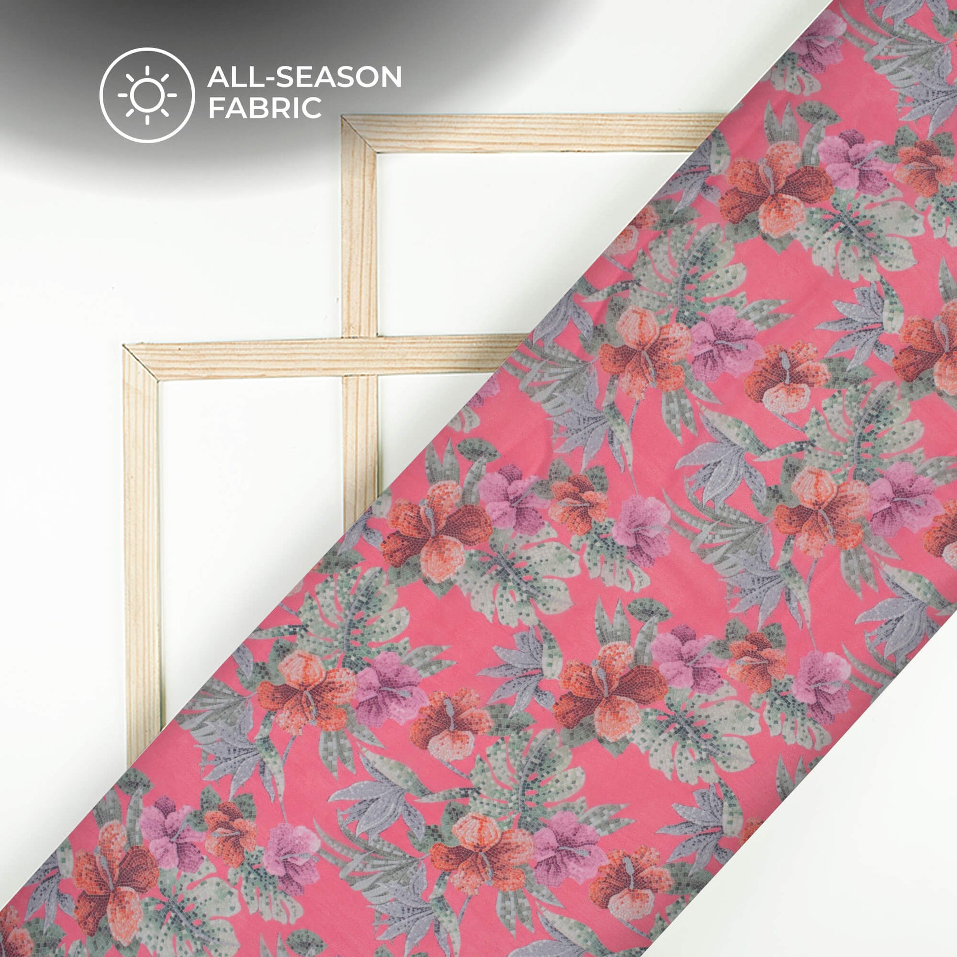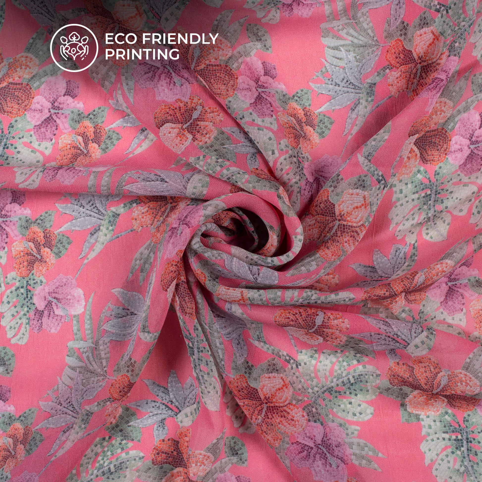 Taffy Pink Floral Digital Print Pure Georgette Fabric