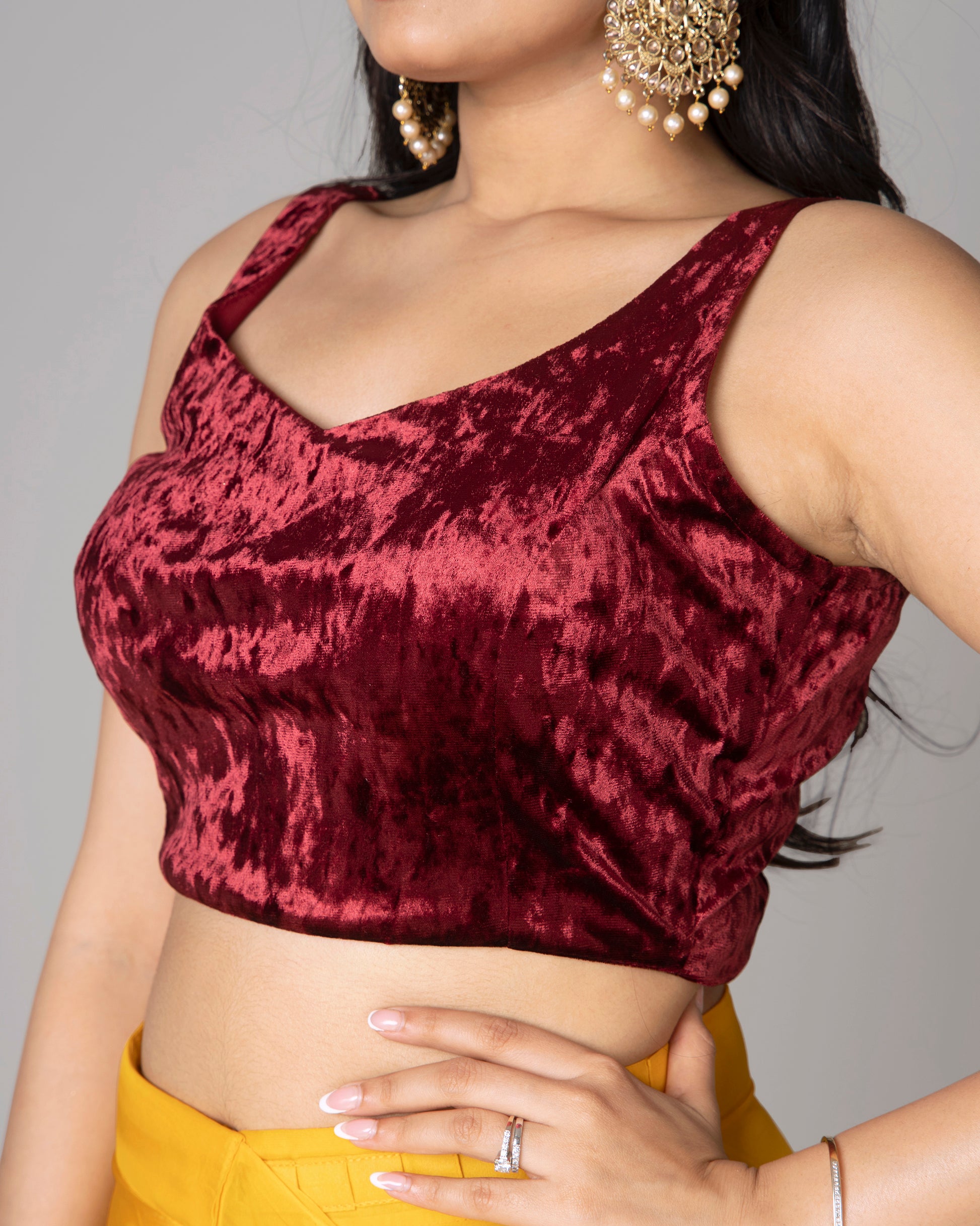 "Unleash your chicness with this V Neck Bliss Velvet Blouse. The soft velvet fabric enhances your comfort while the back knot adds a bold touch. Upgrade your fashion game with this versatile blouse."