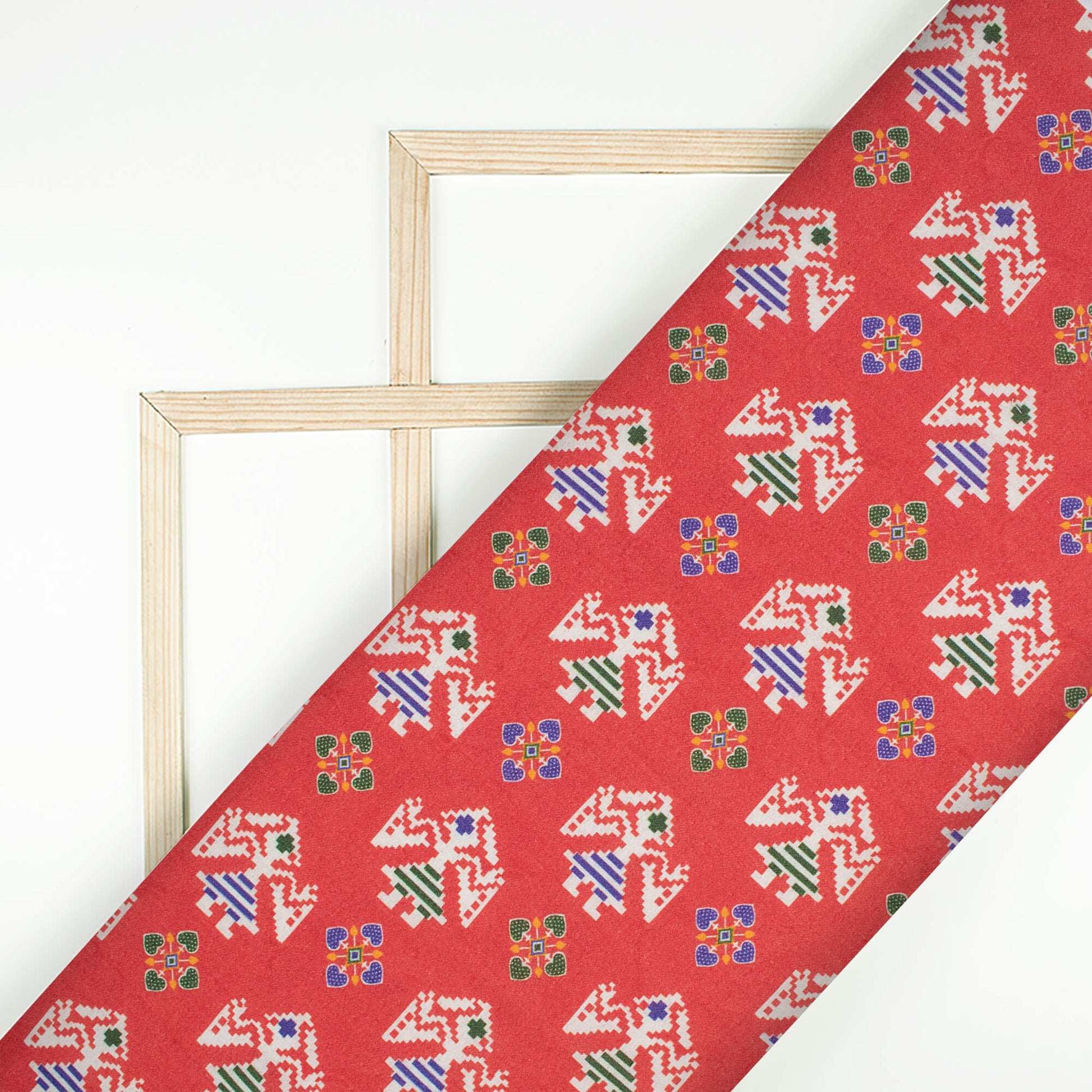 Vermilion Red And White Patolaa Pattern Digital Print Viscose Rayon Fabric (Width 58 Inches)