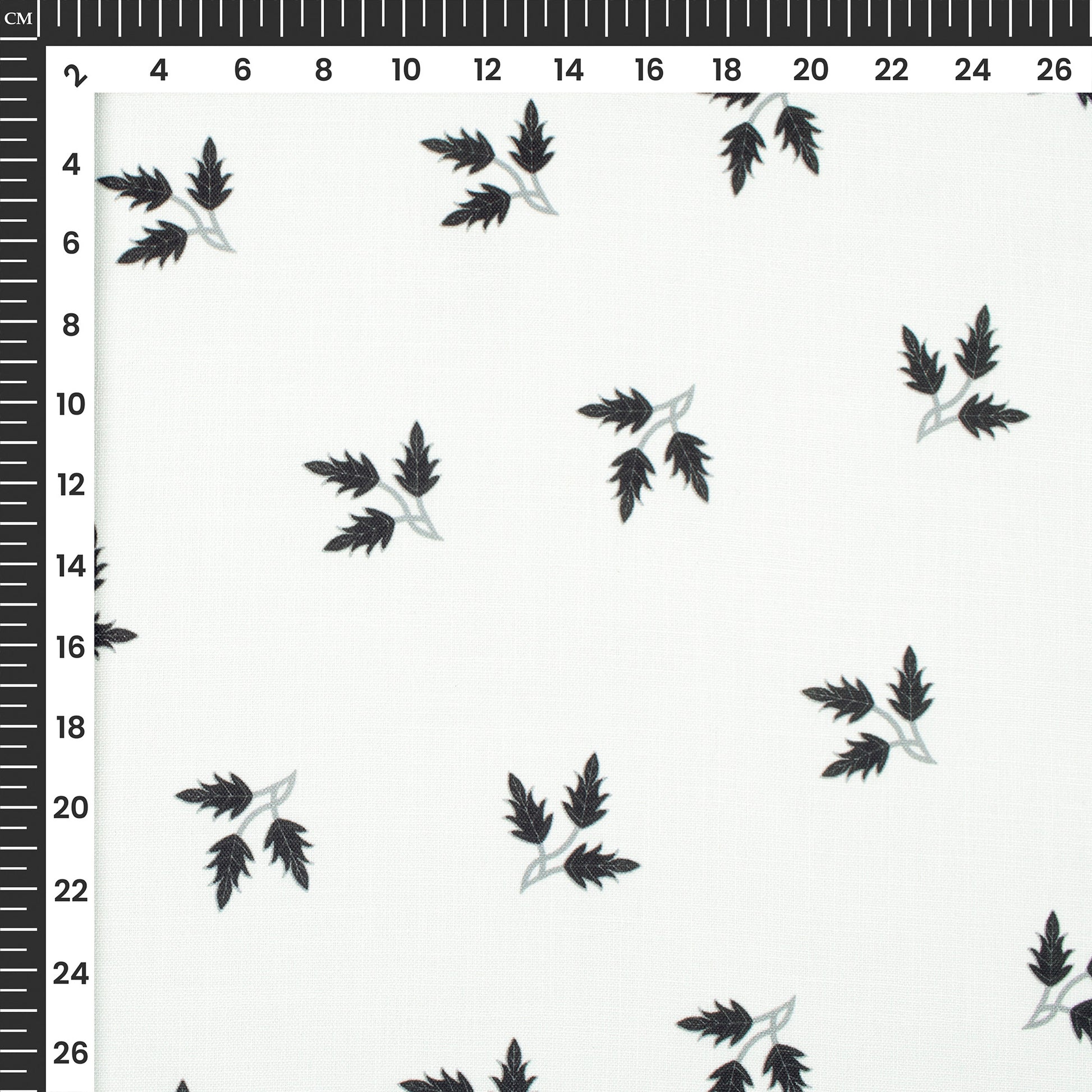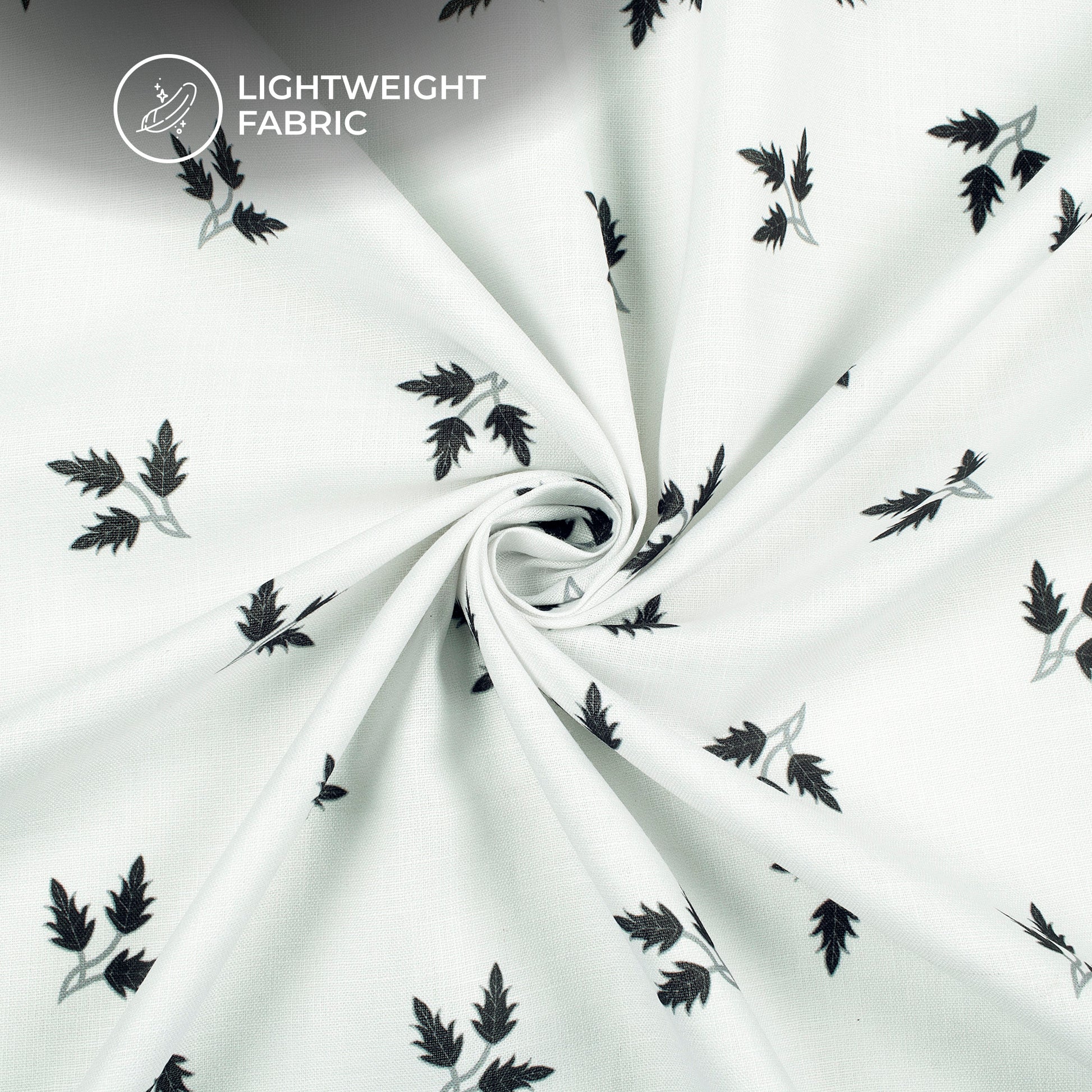 White Leaf Digital Print Poly Linen Slub Fabric